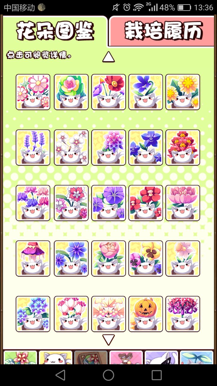 搞定啦哈哈哈哈哈哈哈! 大概攻略也… 我还是放图吧。总之偶尔不够钱买种子可以用上珍宝猫粮跨级培养然后在出改良种和魅惑种的地方用双倍或者三倍饲料,三星以上可以直接用喵喵奶汁啦不会亏的?花盆觉得有一个大花盆和火箭花盆基本就够了,一个加速一个加星x 种子可以自己种出来的话也不用去买啦!(大概变异这种拼人品的可以买一下,其他的都是组合必出,看看整理配就好啦!)顺便觉得那个猫型种子十分鸡肋,十分鸡肋!