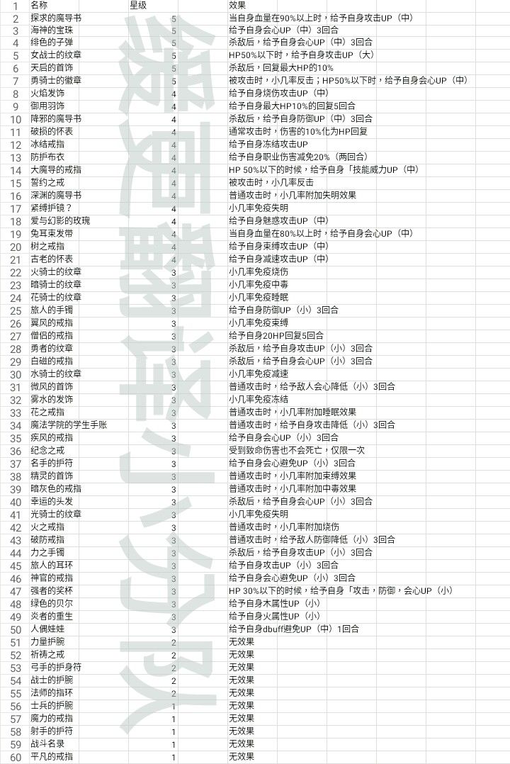 1.1更新:新装备名称及特效,在每个星级最后查看——————————————————————————如有错误,欢迎指正