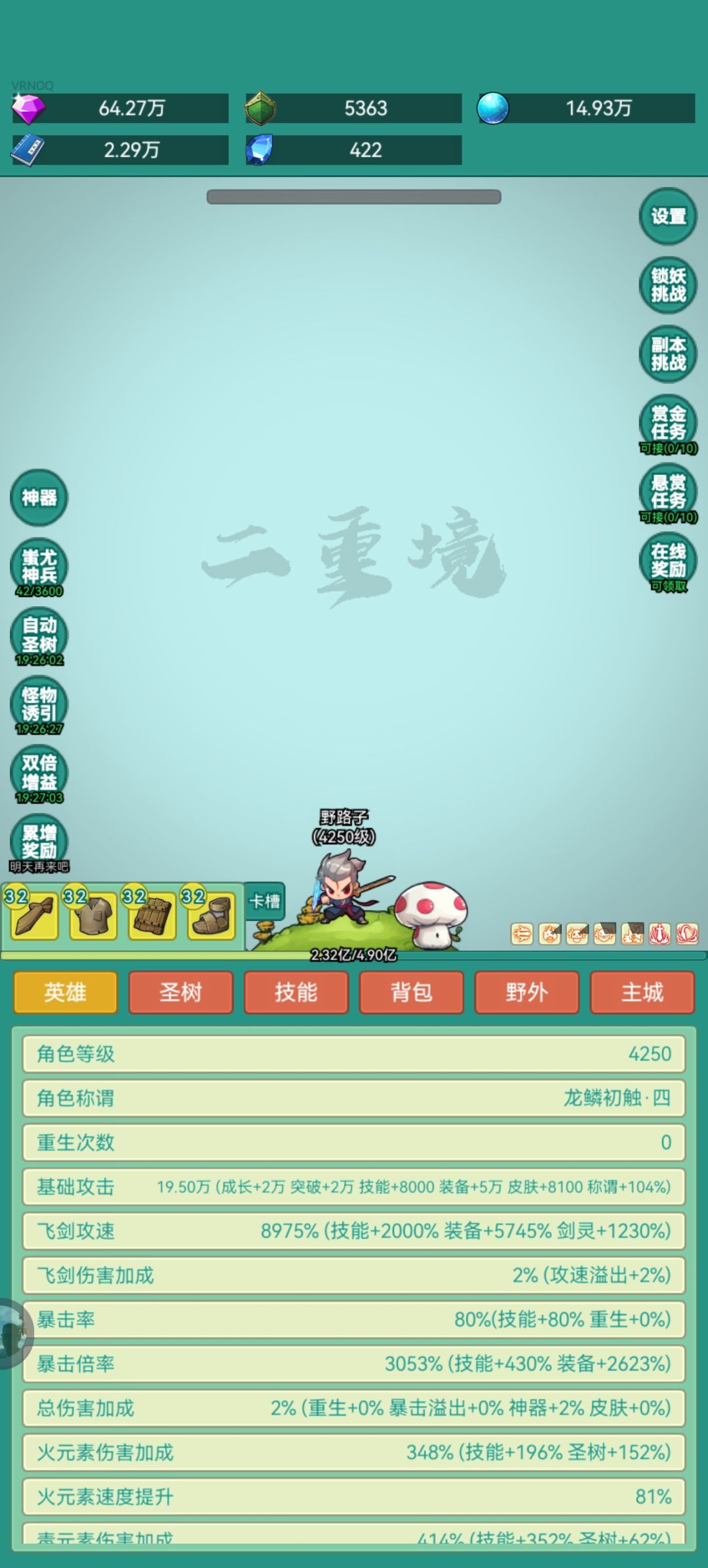 #神秘冒险皮肤 这游戏一转前比较慢,一转之后基本每周都能转生一次。 1.转生前最好能囤个10亿钻,正好能够点满技能。 2.转生前可以省下扫图,2700个首领正好升到1200级可以打龙。