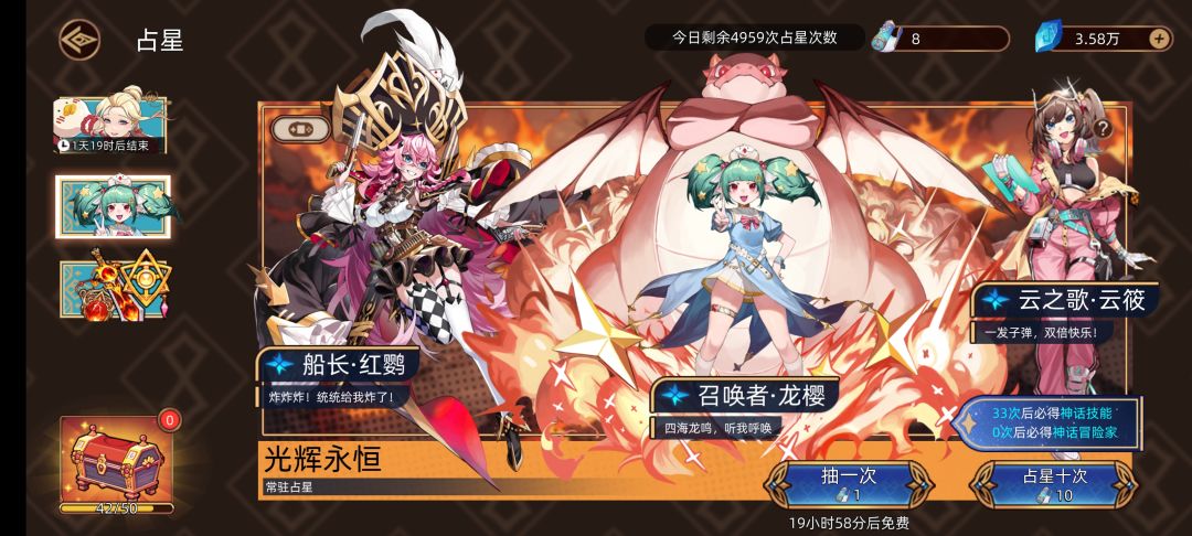 福利码: taptap 激活码:在【礼包】中查询。 其他激活码:vip666、vip777、vip888、vip999、mtzg666、mtzg777、mtzg888、mtzg999 关于氪哪个池子?哪个角色?的问题 目前开服第一个上的限定是火洛,氪金不多的或零氪玩家都可以去培养,虽然后面池子有上限更高的,但是需要的成本也会提高,主要体现在高阶技能和装备上。 想用最少钻石,拉满星火洛,请把所有钻石