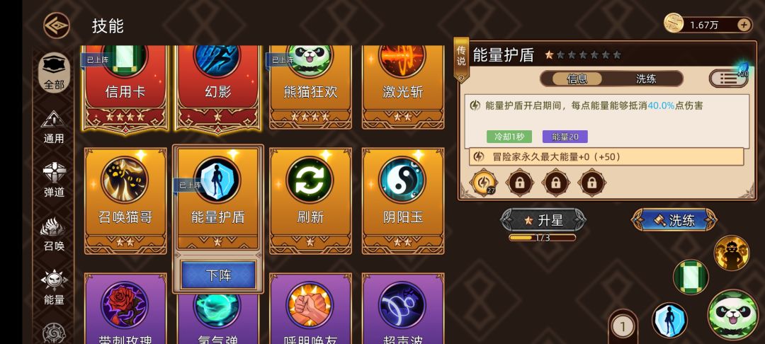 都在写怎么打桩,那我写一个没用的小技巧吧 通关必备技能———能量护盾(图1)带上他方便刷无伤通关的成就&每一个无伤首杀的boss奖励60蓝钻~完全不需要走位躲子弹,可惜我发现的时候已经12级了悲,感觉错过一大笔财富[表情_流口水][表情_流口水] 抽不到这个技能也没关系,周末邮箱有送传说技能自选,开一个就ok啦