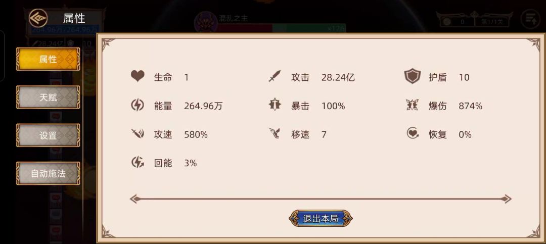 角色选择(圣盾*千机)满星 技能:怒意,等价交换,守护之盾,攻击光环。 狂欢技能:防守反击。 密术:滴血术。 进对局一定要有汲取技能(加攻击力) 防御方面:角色圣盾*千机7星有3圣盾(每过都有3圣盾),技能守护之盾(临时圣盾)天赋遇强则强2星(每10关boss首领关加2护盾)天赋初盾(加圣盾) 天赋推荐:3星玩命(加攻击力),3星狂暴之力(加攻击力), 2星遇强则强(加护盾),初盾(加圣盾),爸体