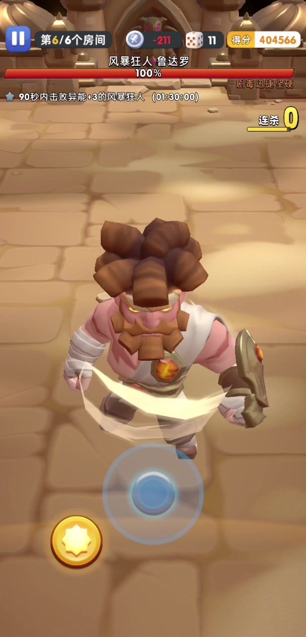 新版本的最终BOSS,难度一般吧,比水祭祀强一丢丢,风祭祀的破盾条件是物理伤害,正好黑兰丸第一个天赋的毒标第一段伤害就是物理伤害(黑兰丸果然是天选斗技场达人[表情_大笑]),所以只需要疯狂闪避就可以破盾了。这个BOSS有威胁的就只有二阶段的连续召唤旋风,配合地形技能可能会让你无路可走,破法也简单,火陀螺打断或者输出足够把他在放这个技能前打死就行了。 难度评级:B