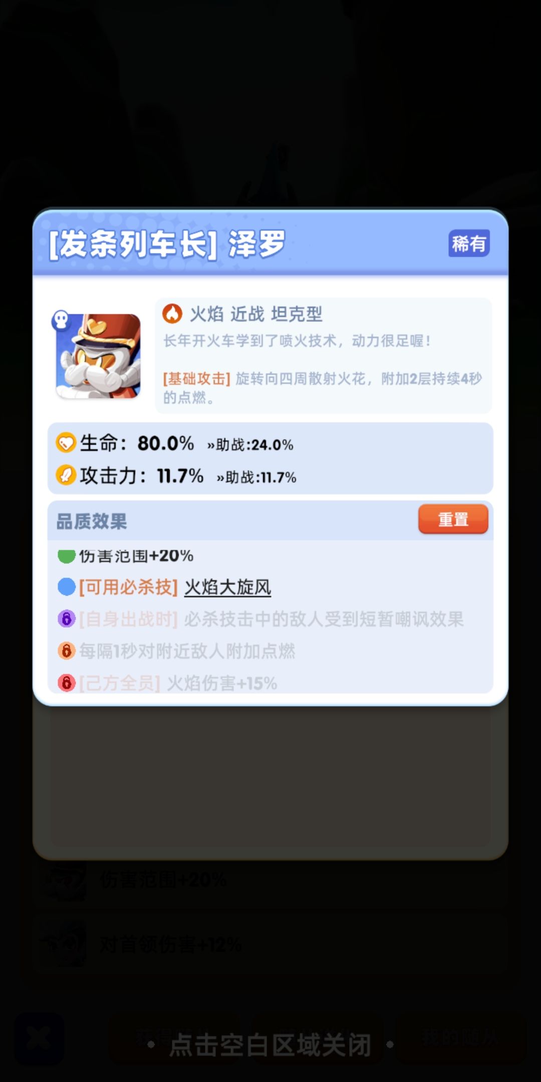 坦克系 1.发条列车长——泽罗 2.流浪狱卒——米兰达 3.发条鸭子——达克 4.大明星——尼古拉 输出型 1.半途忍者——镖次郎 2.火恶魔——芙拉明 3.623队长——斐利迪 4.无限修行——剑圣 辅助型 1.极速狂飙——蜗牛车 2.邪道医生——罗丝 随从出战一个,助战三个。出战的可以攻击放技能,助战的只能提供属性加成和被动加成。 1.同名的只能上阵一个 2.坦克和输出红色以前不会给英雄提供属