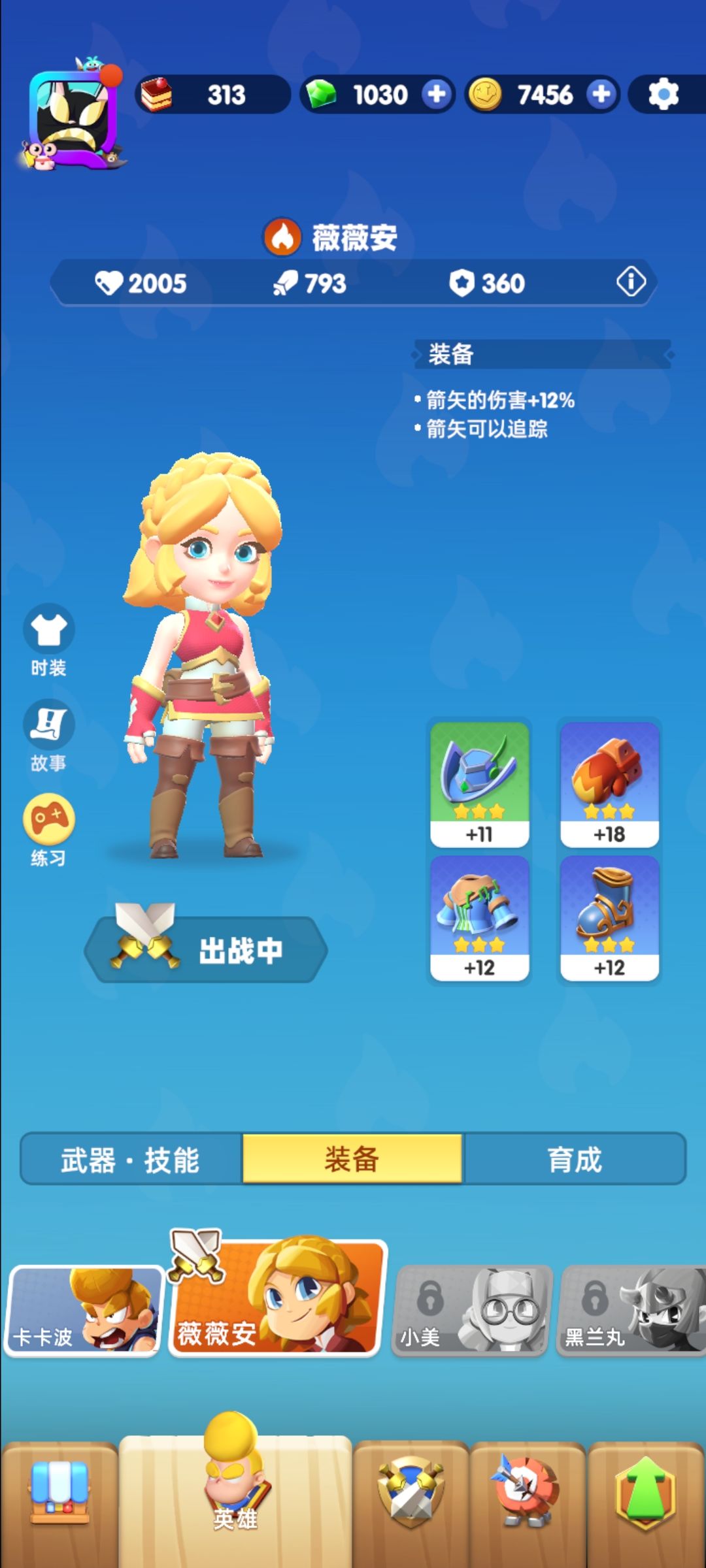 通关近在眼前 [表情_ohh] 分享一下我的搭配吧 微氪玩家获取资源难度高 更要谨慎选择升金的装备 角色推荐小美 点出移动射击打开新世界(射击会减移速所以推荐带健康奖牌加速 打大部分BOSS都跟遛狗一样) 武器首选冰弩 战技推荐电枝 火陀螺 升金 终极技能推荐机器人 高压沙蚤炮 升金 被动推荐健康奖牌 影子闪电 升金 装备推荐 吟游头和丘比特头 衣服推荐吟游衣服 另外两件推荐强击2件套(四星才出)