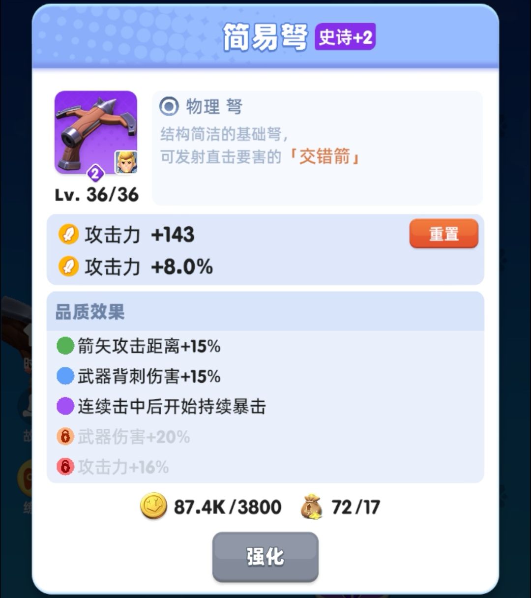 我是零氪玩家,到今天正好是一周时间,目前关卡打到一章8-2,接下来的内容仅代表个人意见。 相信很多朋友对于选择武器会比较纠结,既想玩的顺手又能打出高输出,很多人会选择照抄大佬的装备,这也是没有问题的,但可能会有一点差距,品质的高低决定了属性条的多少。 还有一个最重要的事情,就是武器重置,武器升传说之前都是可以免费重置返还所有消耗的原武器,因为是给零氪玩家的建议,在你资源不是很多的情况下,最好不要升