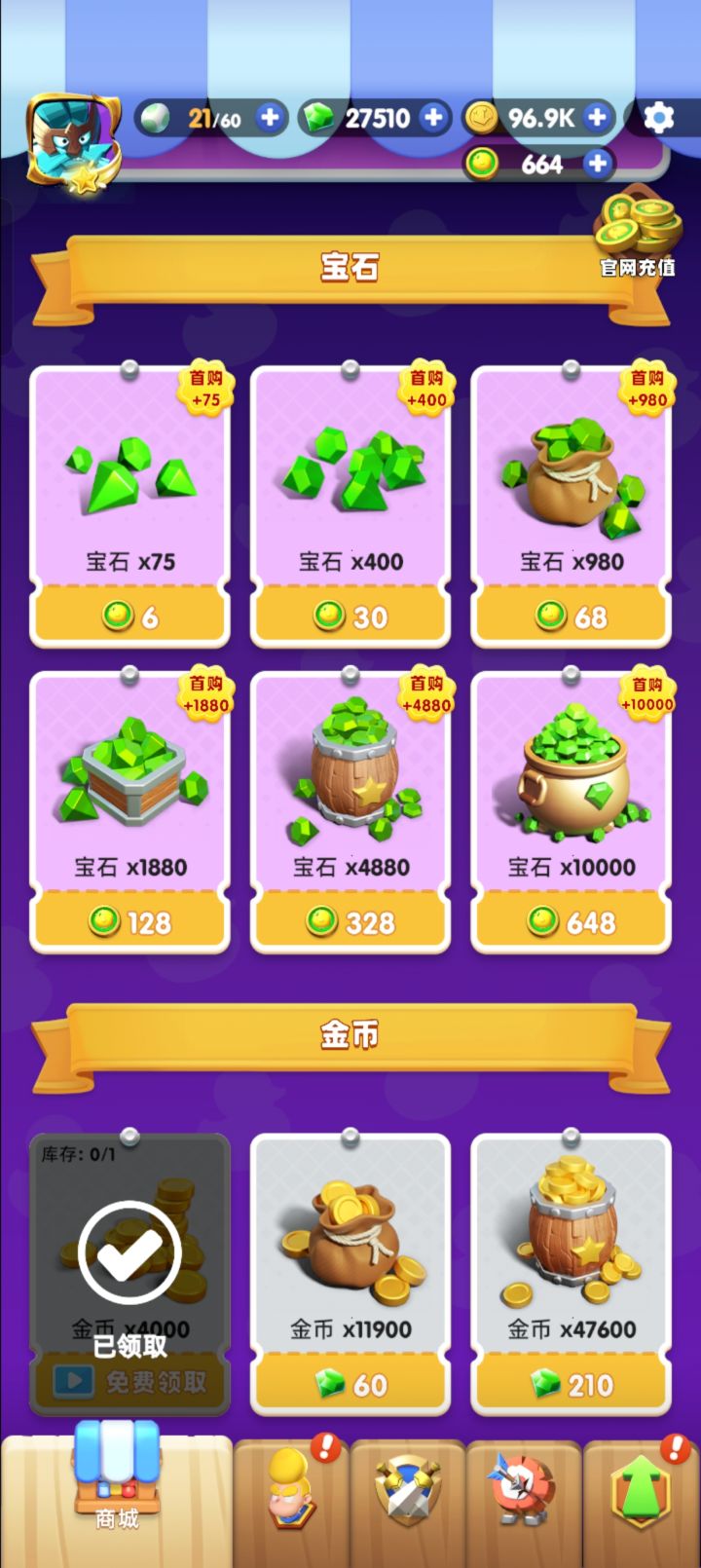 瞎玩了一阵子,基本能氪的都氪了体验了一圈。本游戏氪金有较大的性价比差,为了让微氪玩家氪的舒心少走弯路,下面一个个讲。手机发帖排版无能,但是文中提到的都有截图例。一,宝石怎么氪推荐度,终身卡>月卡>成长基金>金猪(不推荐>直接购买(不推荐)重点聊聊直接购买,这是萌新进入游戏的第一个消费陷阱。很多游戏直购加首充双倍奖励是血赚的,但是这游戏直购的性价比不如金猪就很神奇。终身卡带免广告,可以大幅提升每