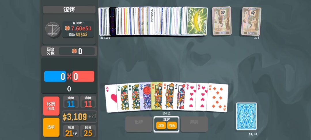 朋友们,这个游戏太小众了,只好来小丑牌求攻略。 小丑牌分数最高的玩法是钢K流吗,我复刻了一下确实猛,但是面对BOSS“贵族牌失效”的限制时却束手无策。 请问有什么办法打的更高层吗?#小丑牌 #小丑牌balatro #小丑牌攻略