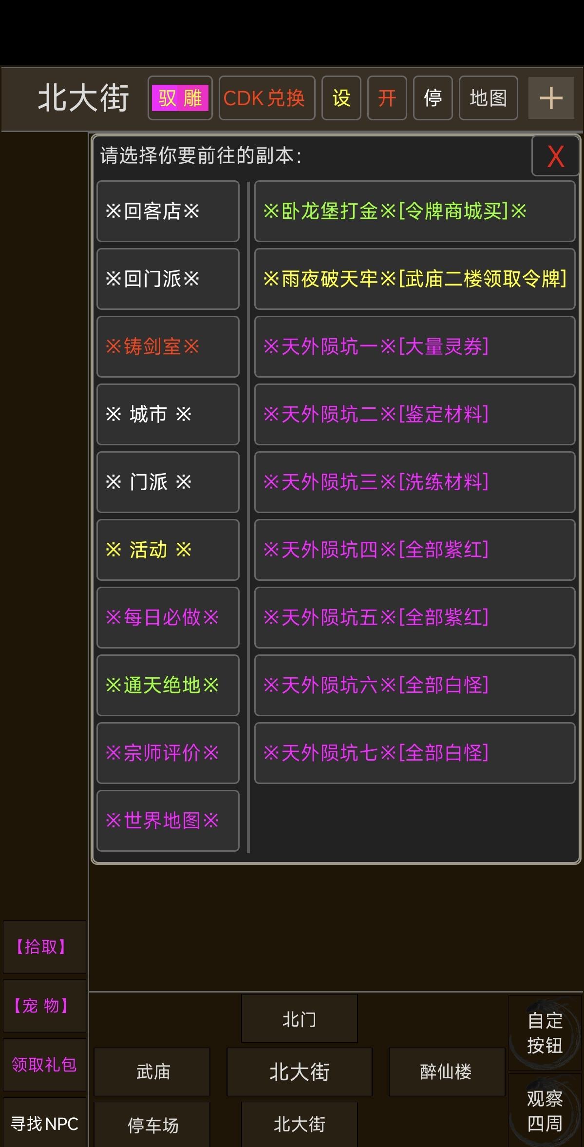 挂机器人perform force.ri;get jin from corpse 1;get jin from corpse 2;get jin from corpse 3;get jin from corpse 4第一步第二步就是飞至北京第三步打开自定义按钮(需要的指令也是发进群里了)第四步进入了副本真九阳打的途中机器人会自动补刀也就节省了时间这里是点击两次后第五步第六步打完