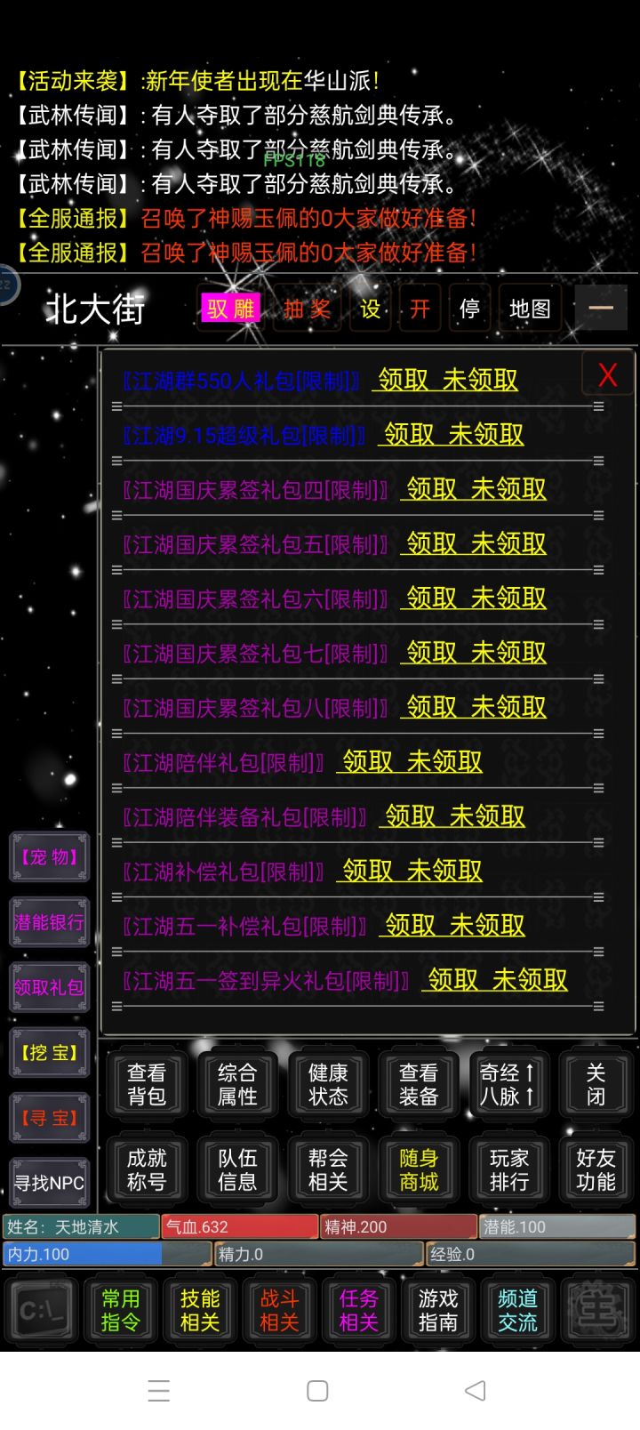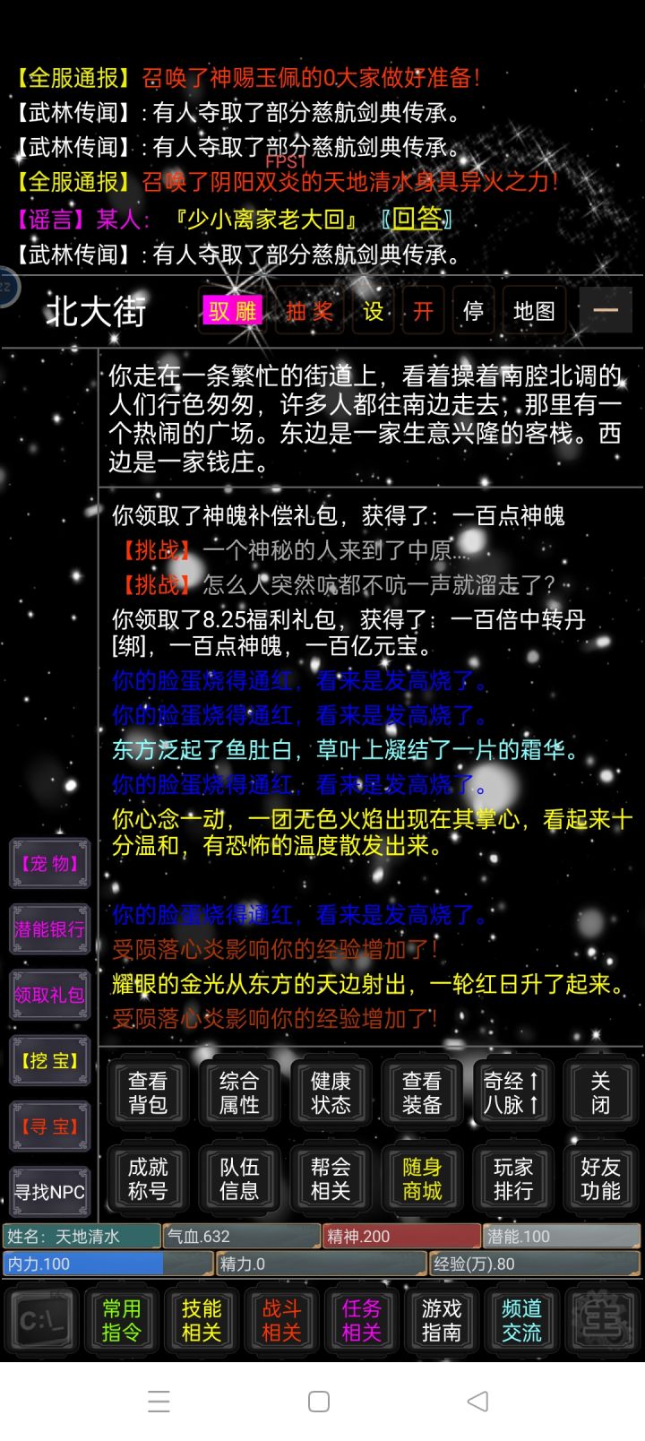 这是我玩了三年多的mud游戏现在已经连续更新了四五年了,刚入坑时内容很少到现在的五六张大地图(每个地图都有三四百个格以上)和华丽而厉害的武学(原创每一个都不一样)巫师付出了很多努力,持续更新只为了游戏更加好玩有更多的内容。在我玩过的mud中这是我见过福利最大的服了,先不说节假日的福利,巫师兴起就会发福利每次的都是实实在在的力度也很大,在这里你可以选择直接成为大佬大杀四方也可以选择白嫖成为小高手玩
