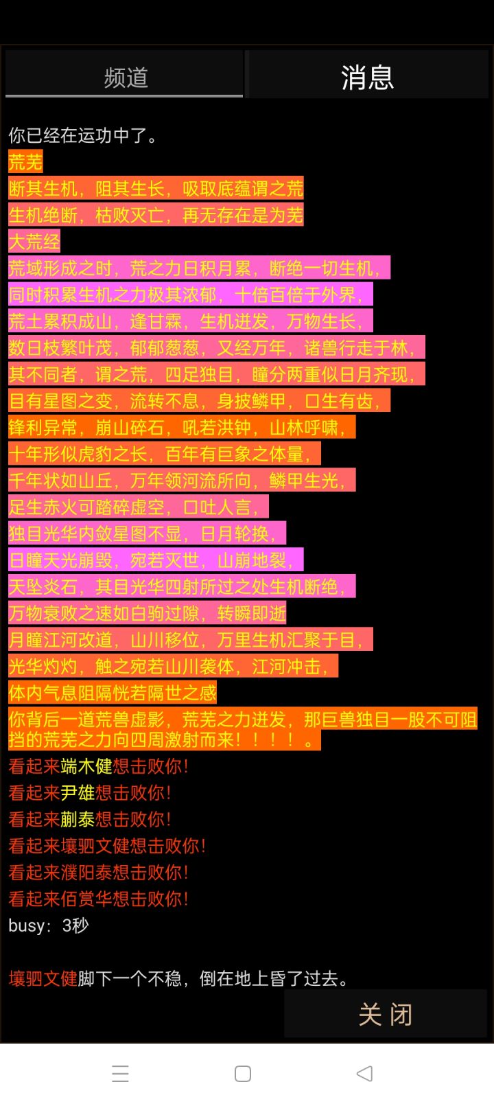 1、当你进入第一次进入游戏,可能会觉得非常多的文字,密密麻麻的布局可能会让你感觉到不适,这时候不要着急,闭上眼睛,深呼一口气,然后再开始领略这纯文字的世界吧!可以玩的小说2、进入游戏以后先不要乱跑,左下角领取礼包,把能领的都领了,,礼包里不止有元宝,神魄还有非常稀有的道具,武学,装备,纹身,打造材料,不知道怎么领的可以问一下群3、纹身的地点在客栈后面,