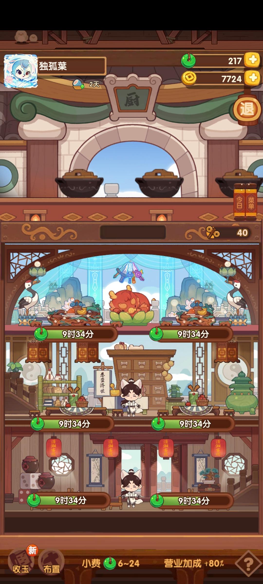 签到907天了,个人很喜欢这个游戏,不肝很佛,看好时间每天上会线就行,有时看顾客的对话也很有意思,也很适合喜欢收集的人,不管菜谱,人物还是建筑,现在整个画面更丰富元素也更多了,画风也更精美,公众号也有很多节气美图和故事,套鹿加油,希望你们能一直更新下去。