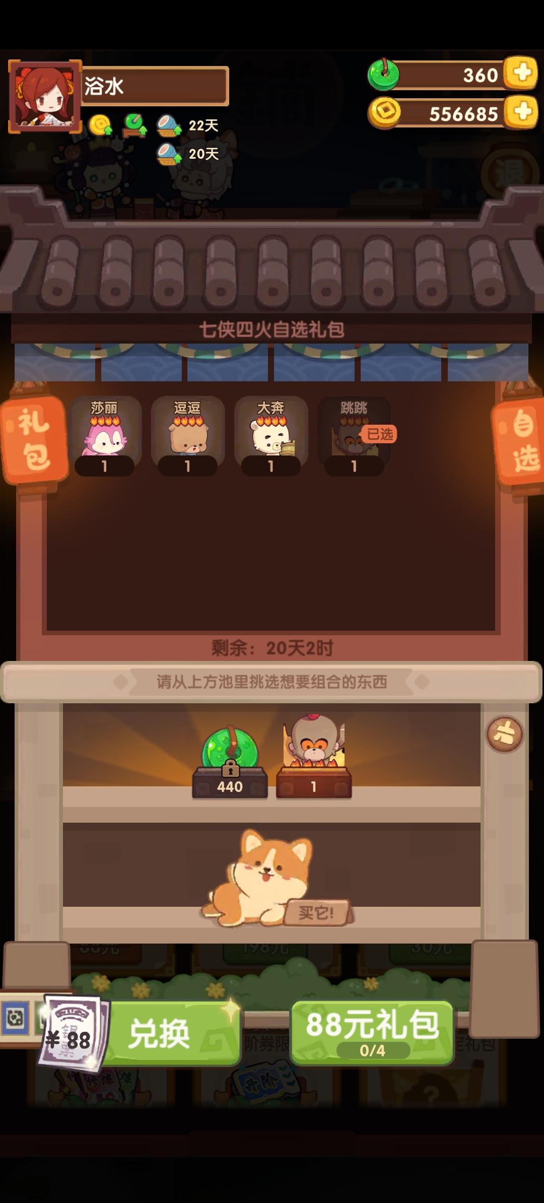 之前一直没评价,现在,虹猫蓝兔七侠传联动回归 ,回归之后发现还有送88兑换券和30兑换券,可以免费兑换商城里面88块钱的东西和30块钱的东西,我直接兑换了虹猫蓝兔联动的一个四火厨师,本来这就已经够让我惊讶的了,完成任务的时候,没想到那个88指的是88元,以为是88折呢,除此之外,回归因为本来的玉没剩多少了,但这次抽经常就是两抽就有一个,到后来的时候也是,2万多个玉,已经快把池子抽满了,还剩三个,还有20多天,这三个随便攒攒,肯定能抽满,本来已经够开心的了,结果刚上tap一看自己还中奖了,就在联动的底下留的评论中奖了,那还说啥,好评奉上