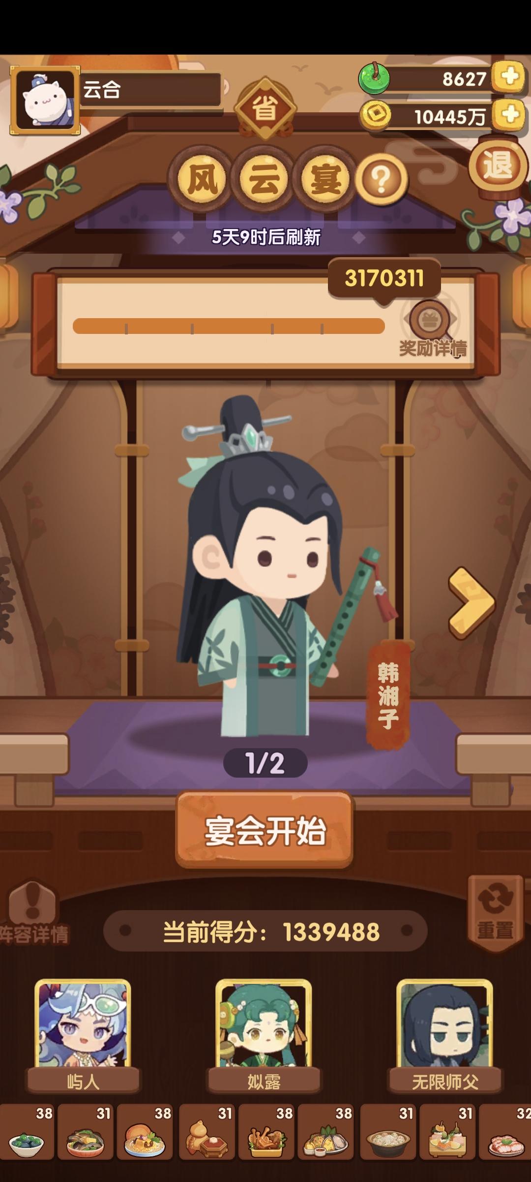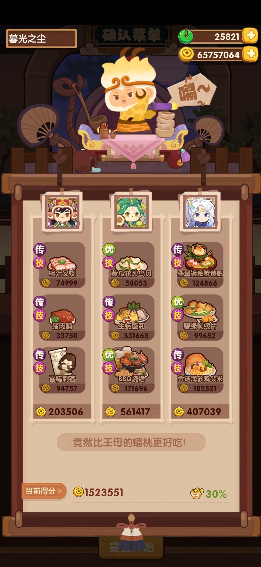 省级风云宴四档作业,除了莉莉公主和黑伯没带厨具,别的带的都是2星加售价的厨具,我的基础修炼算低的,参考了大佬的作业