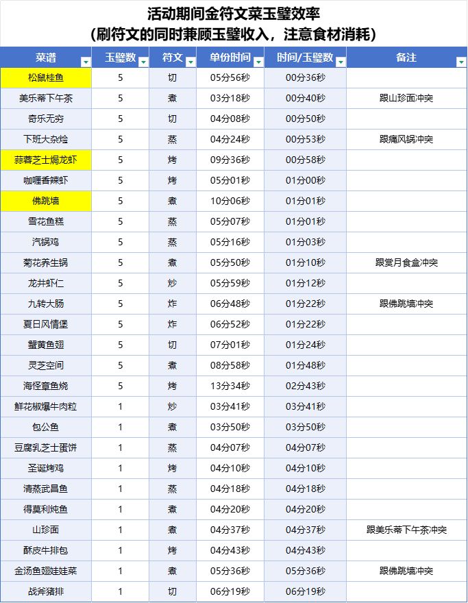 国际惯例的全员无厨具、无遗玉,修炼偏高,具体数值在下方,东西在评论区里。 乐乐妹、无寄、拉琪、桂小乌有修炼,气仙人有修炼但不影响结果。 全菜谱无专精,总分3395298。 【替代方案】 菜谱替代: 没有烟熏鲑鱼可用马卡龙、金臻滋享披萨、洋葱蛋饼、酸奶麦片、椰香莲花酥替代,其他烤切菜谱因为分数太低不推荐。 没有幽灵咖喱可用任意四火炒菜谱替代,因下位替代太多就不一一举例了。 没有庆典蛋糕可用苹果可可彩