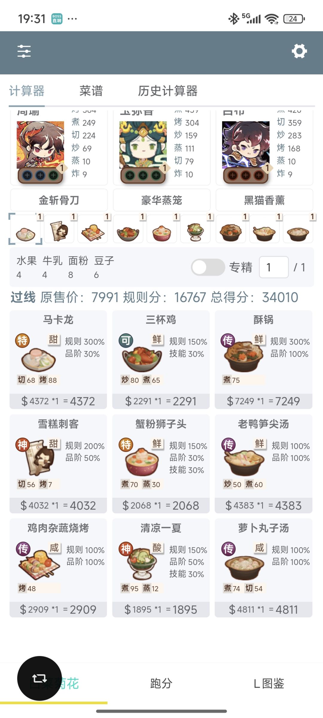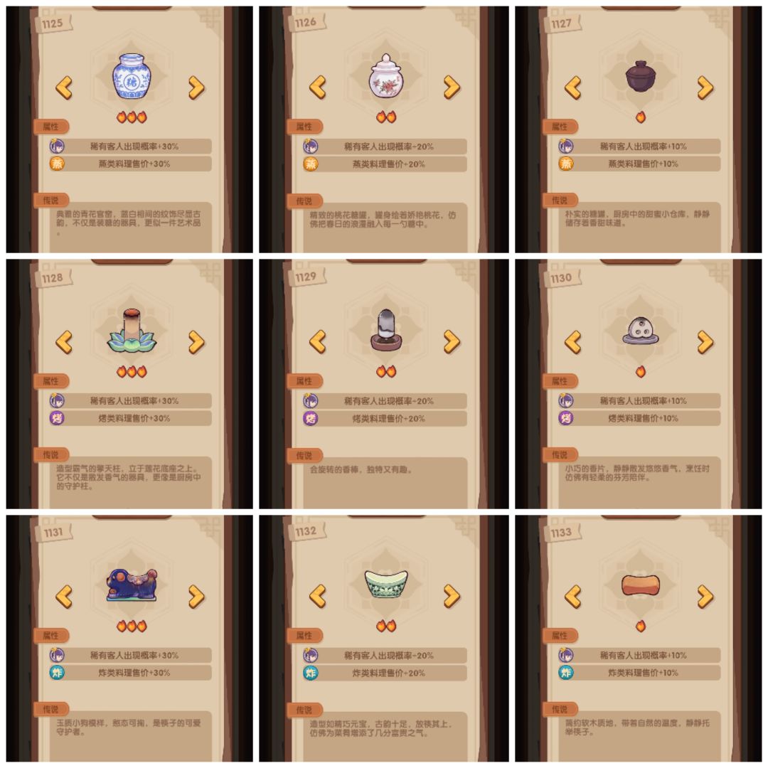 年兽9真难,参考了大佬作业,才总算是擦线过了。 遗玉就二郎神两个切售价+4%, 厨具: 二郎神 烤+100,烤售价+10% 小鱿和黑风 切+100,切售价+10% 特图图 煮+100