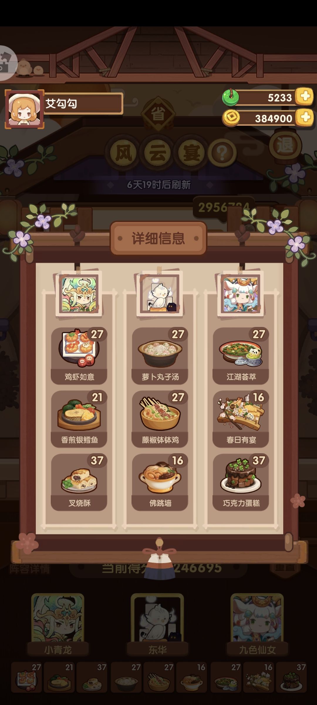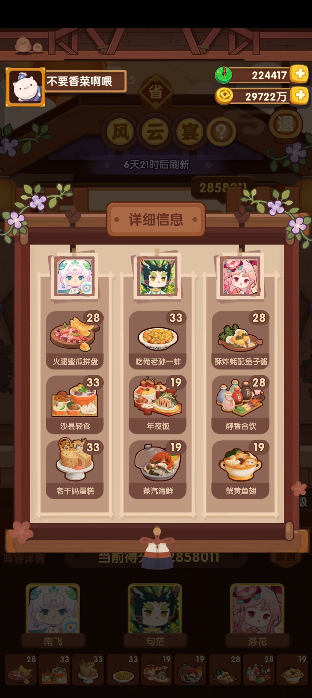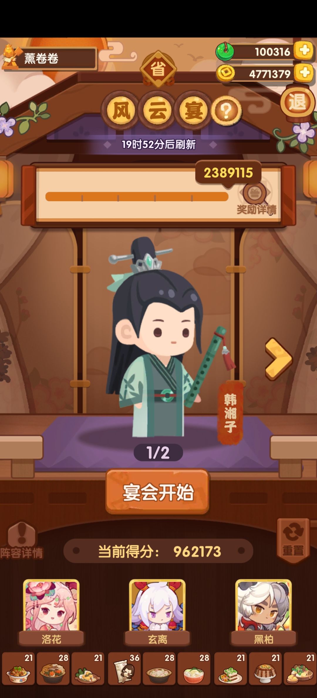 谢yao~ 20240127宴会林冲作业 不好顺带打广告了,今年年兽没有5%了,有大佬让群立刻解散,现在5%冲刺群没有了,只有业余玩家灌水的群。 这周用了咖喱 一周断断续续的刷宴会贵客,顺便统计一下爆率。