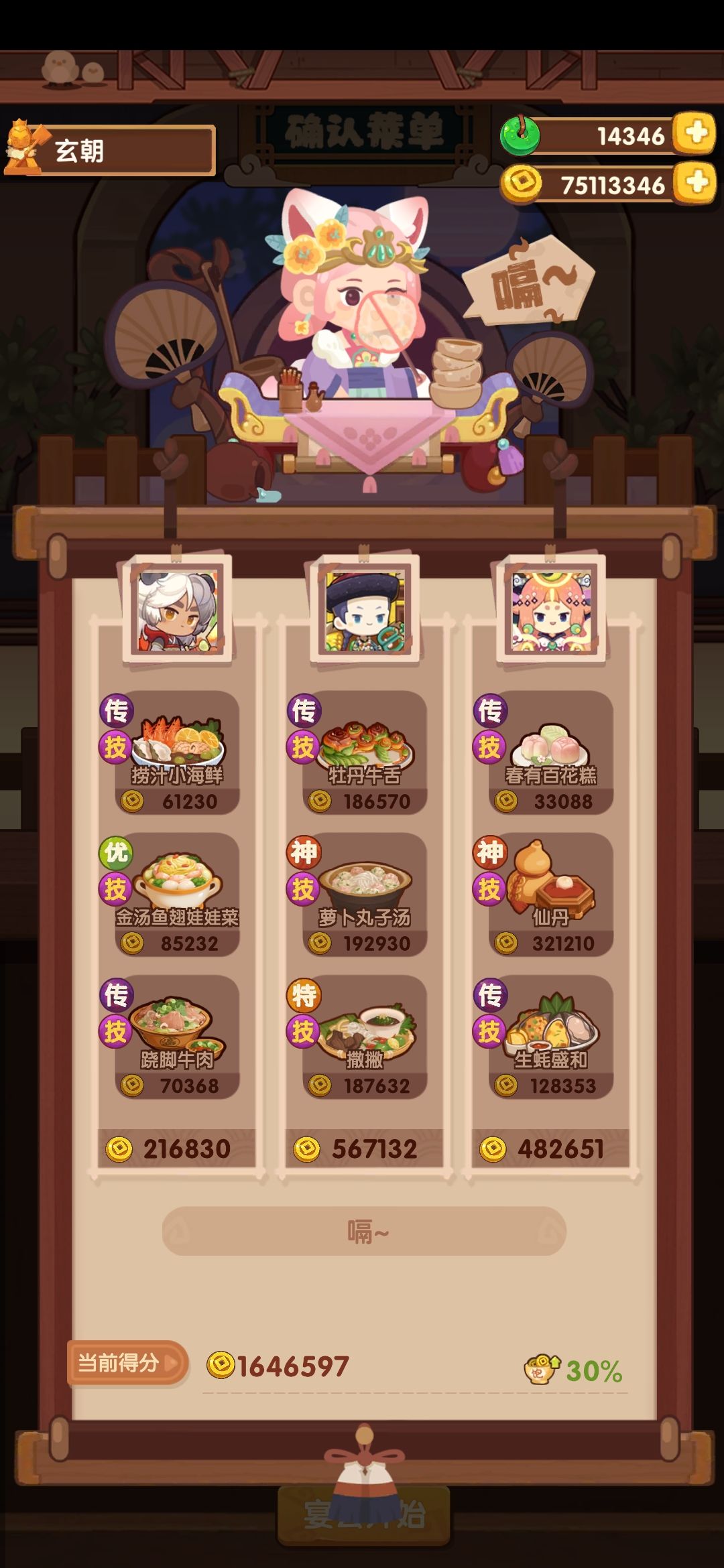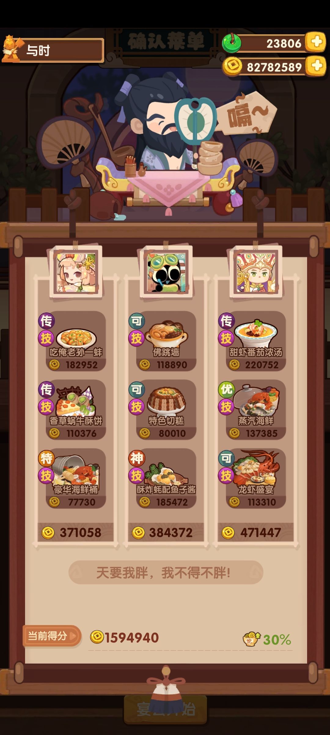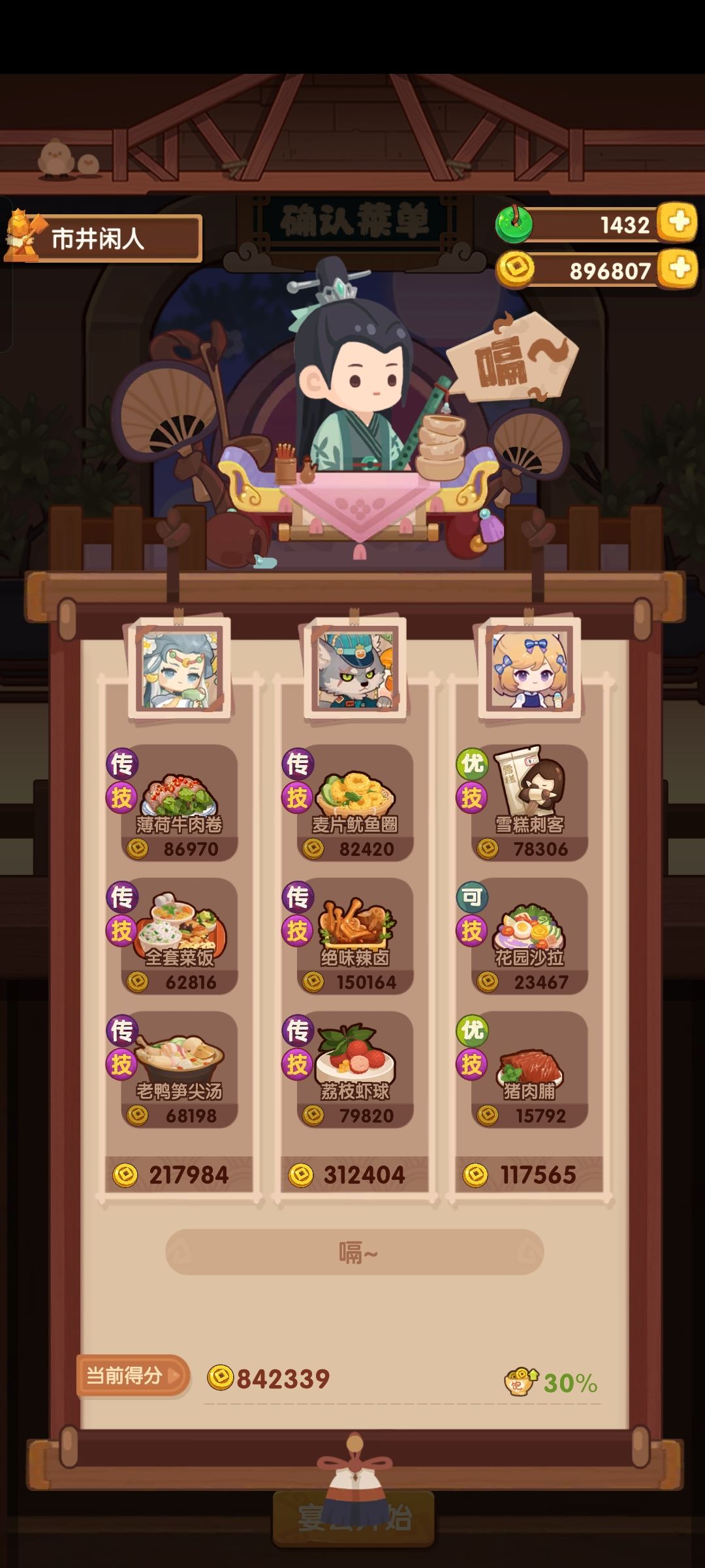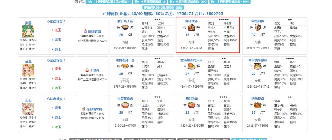 用计算机算了一下,凑了点厨具终于上了三档 个人觉得这个作业应该比较好抄,毕竟常驻的宴会菜我基本都没有