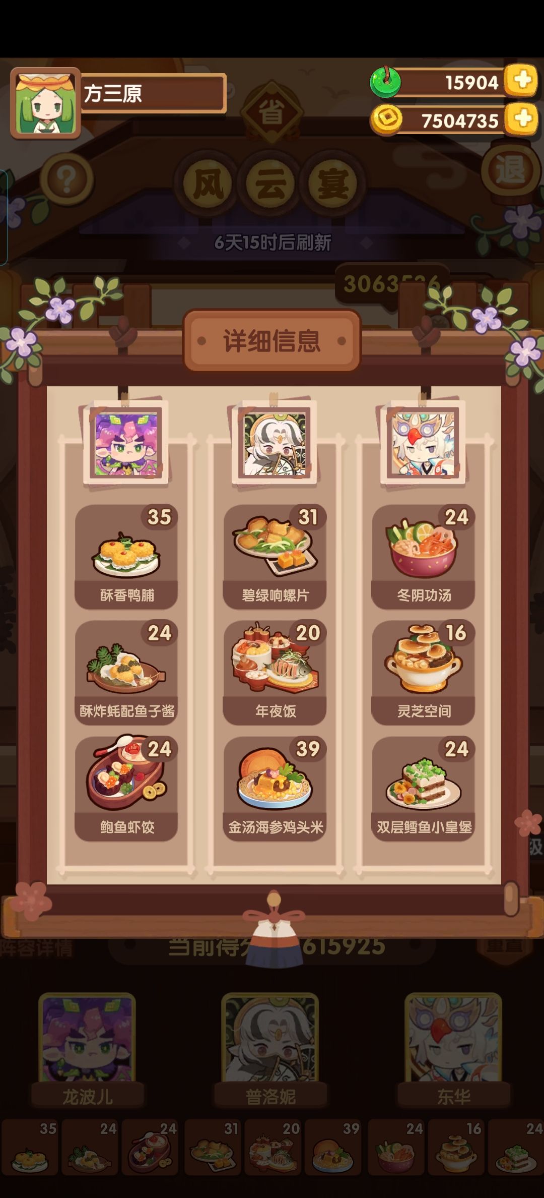 感谢论坛的作业!没论坛,跑分凑出来甚至不到2800000;看论坛,甚至保住了之前上的三火实验室厨具,它们这次不是最优解,但我舍不得轻易换[表情_泪目] 钟离权: 第一阶段,烤切🈚小公明,姒露后面用,所以拿切厨拉琪上烤厨具了,按我基修,至少120烤,150烤更优。 第二阶段注意!!感谢论坛朋友的提醒,酸菜白肉锅放在年夜饭前面能吃更多加成,很关键,直接提升1w2 第三阶段黑柏用中级池三火能更高,但我舍