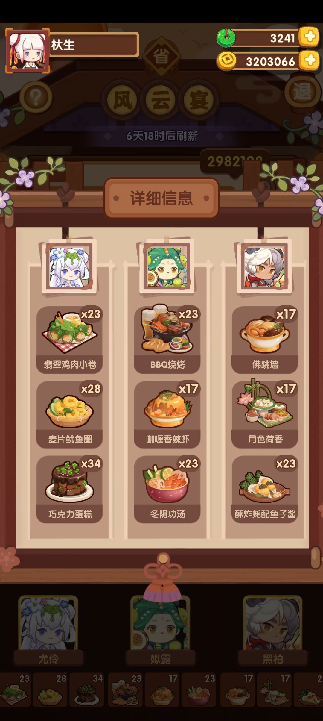 国际惯例的全员无厨具、无遗玉、无礼包厨(坑除外),修炼接近无氪满修炼,具体数值在下方,东西在评论区里。 全员有修炼。 全菜谱无专精会无法到达满档线,和我修炼数值差不多的刚需老干妈蛋糕、醇香合饮和佛跳墙的专精。 本次宴会难度颇高,以下仅供参考。 【作业常驻的限制列表】 *预警:如果无法满档会适当解开限制* 沙县轻食、全套菜饭和月色荷香之外所有后厨菜不上场。 生蚝盛和与仙丹不上场。 修炼后的唐三三和藻