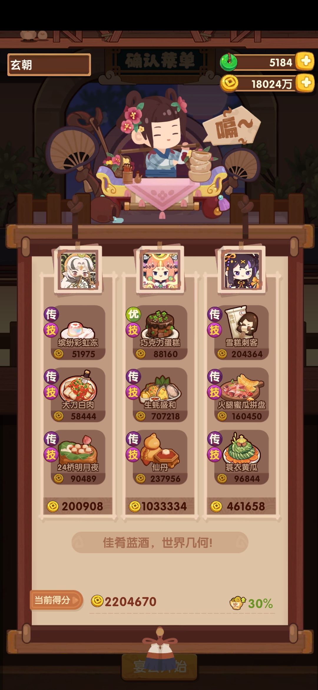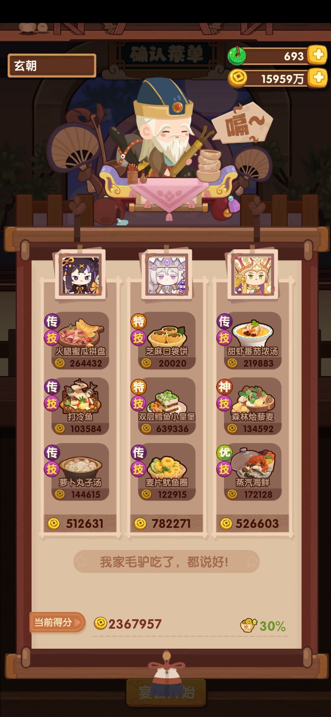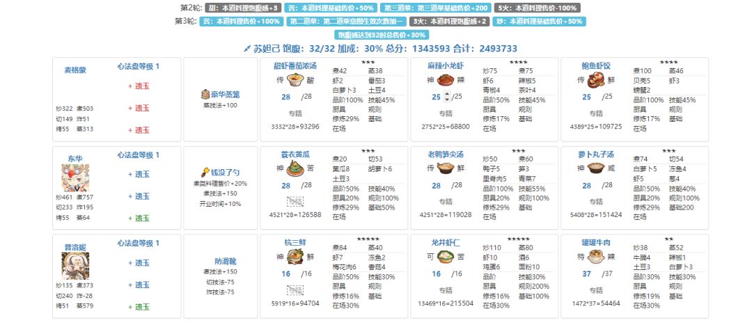 本次宴会很简单,只放俩无后厨菜和心法盘的单贵客作业。如果一个贵客分数不够,第二个随便凑满饱食度即可