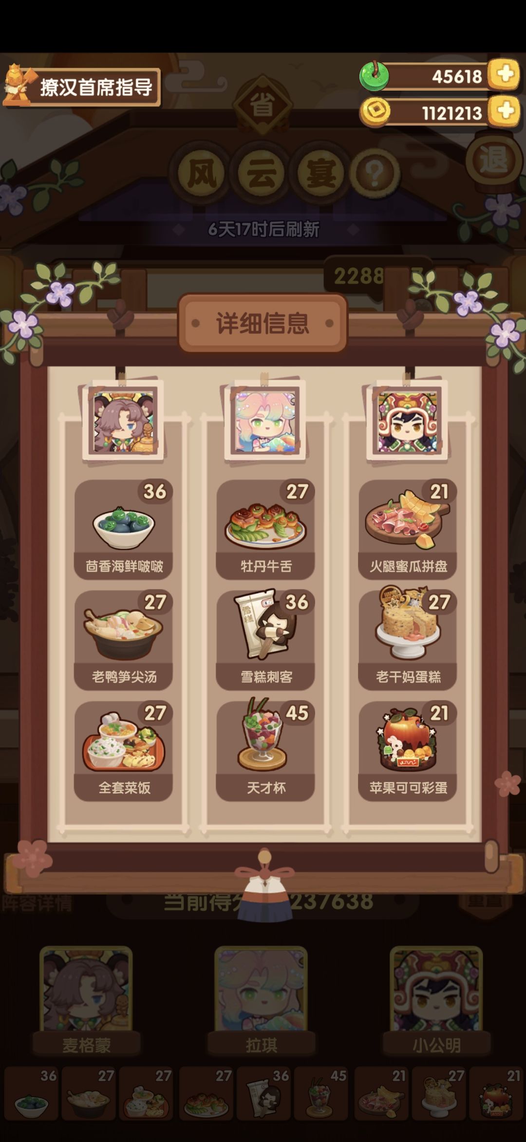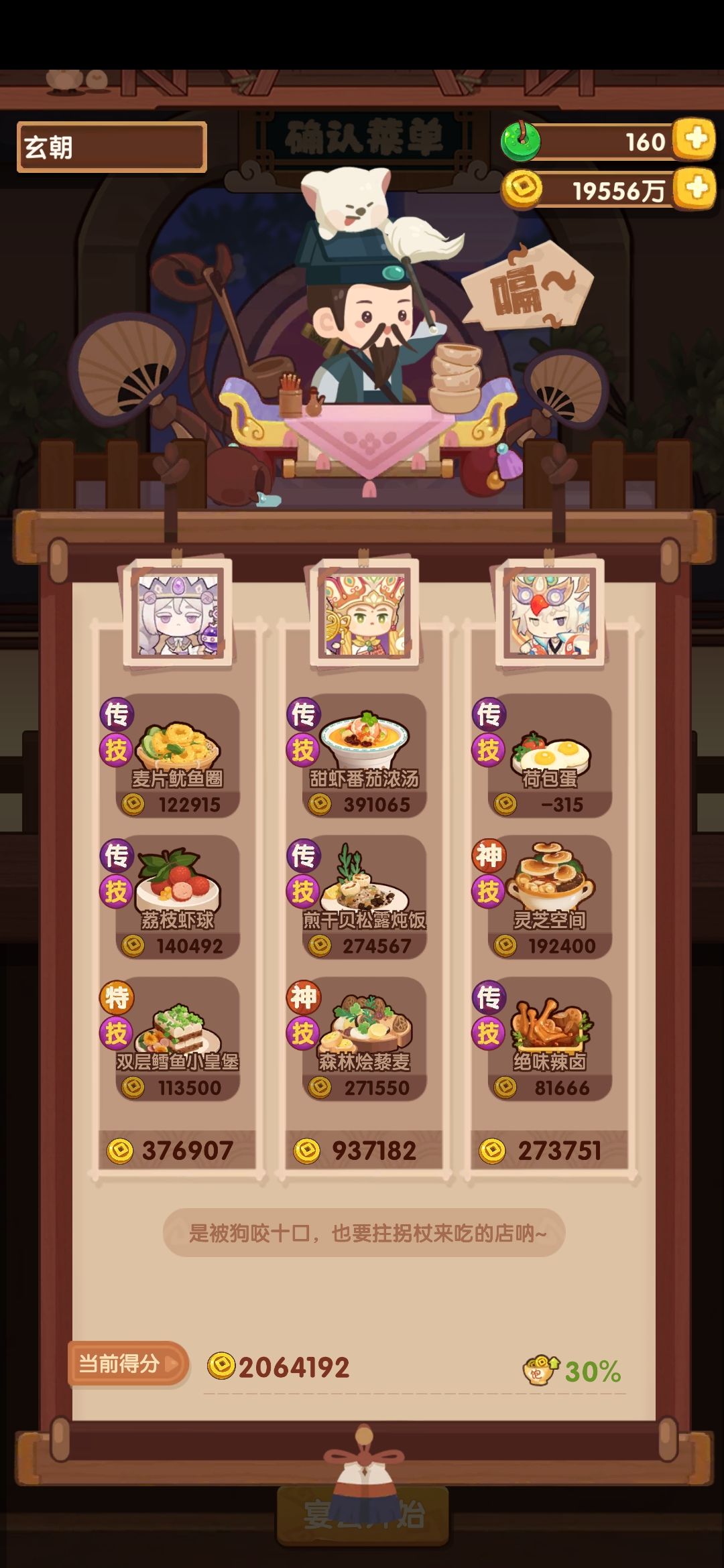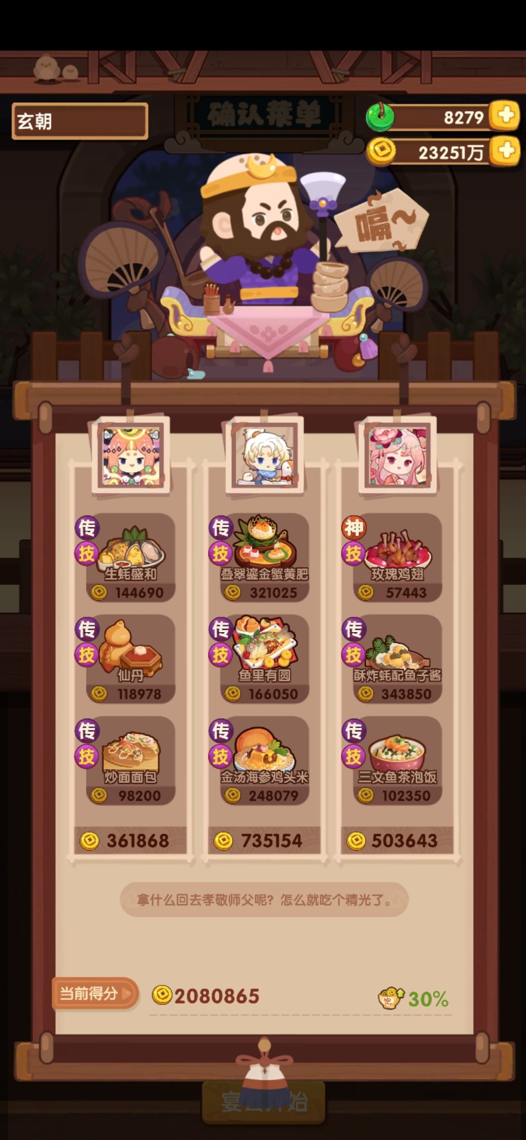 本次宴会很简单,只放俩无后厨菜和心法盘的单贵客作业。如果一个贵客分数不够,第二个随便凑满饱食度即可