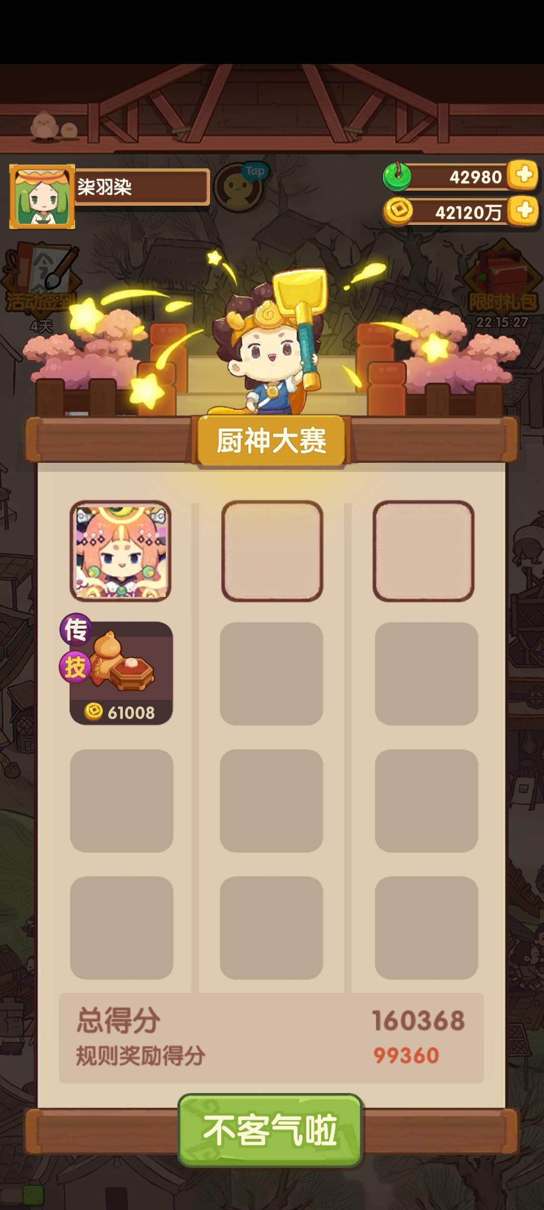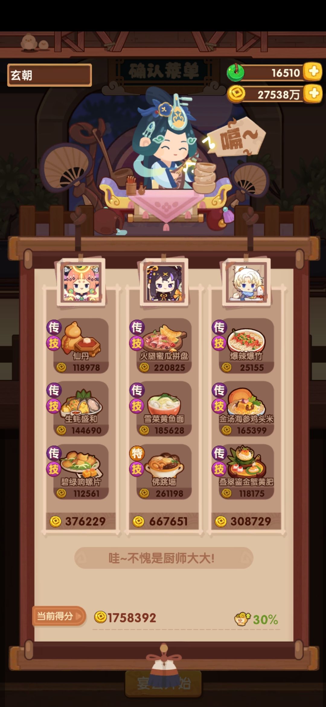 东拼西凑凑到323W🥹 📌适用于基修40-50,后厨需年夜饭,唐三三已修 📌大部分🈚专精,加了6个厨具,2个席丰 抄的这位大佬的作业 🐲0405[白*吕]省宴会五档喵喵适用 - TapTap 没有蒸汽海鲜,所以调整成金汤东星斑~