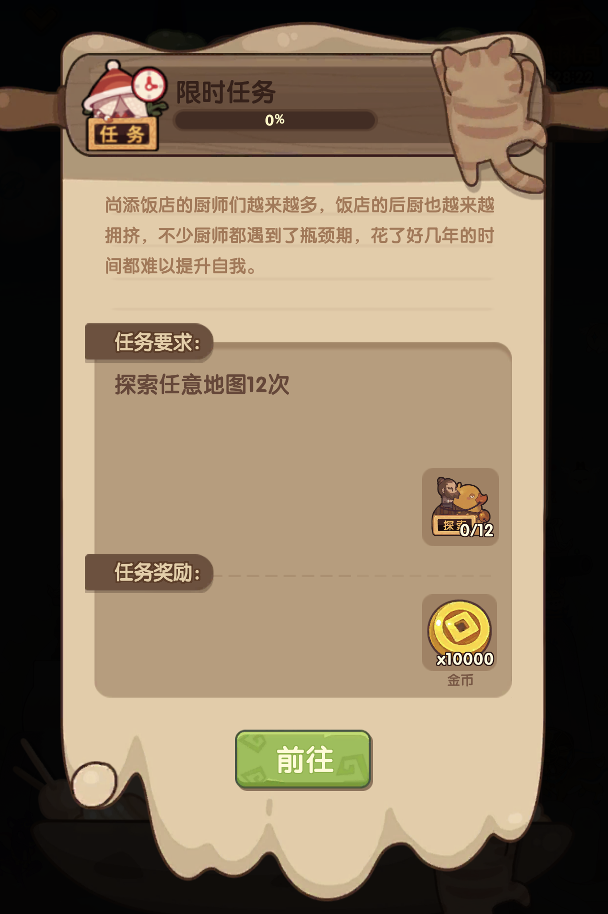 新手池菜谱也能过,没难度,等于白送。 考虑到有传级和专精,怕不稳的话剩下的格子多填点自己有的最高价的素菜就行。 挑战失败不扣次数,可以随便试