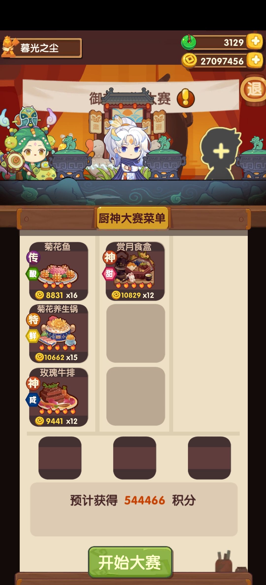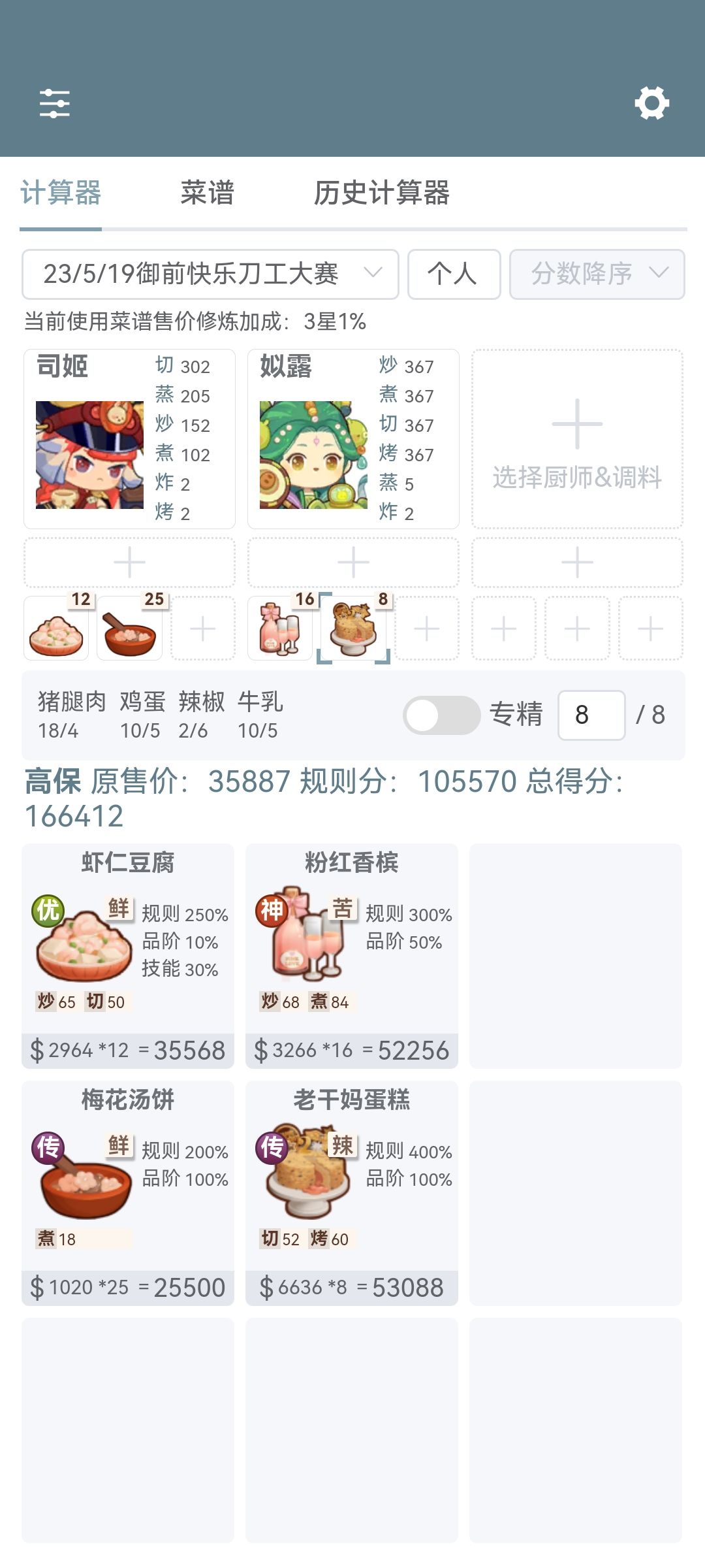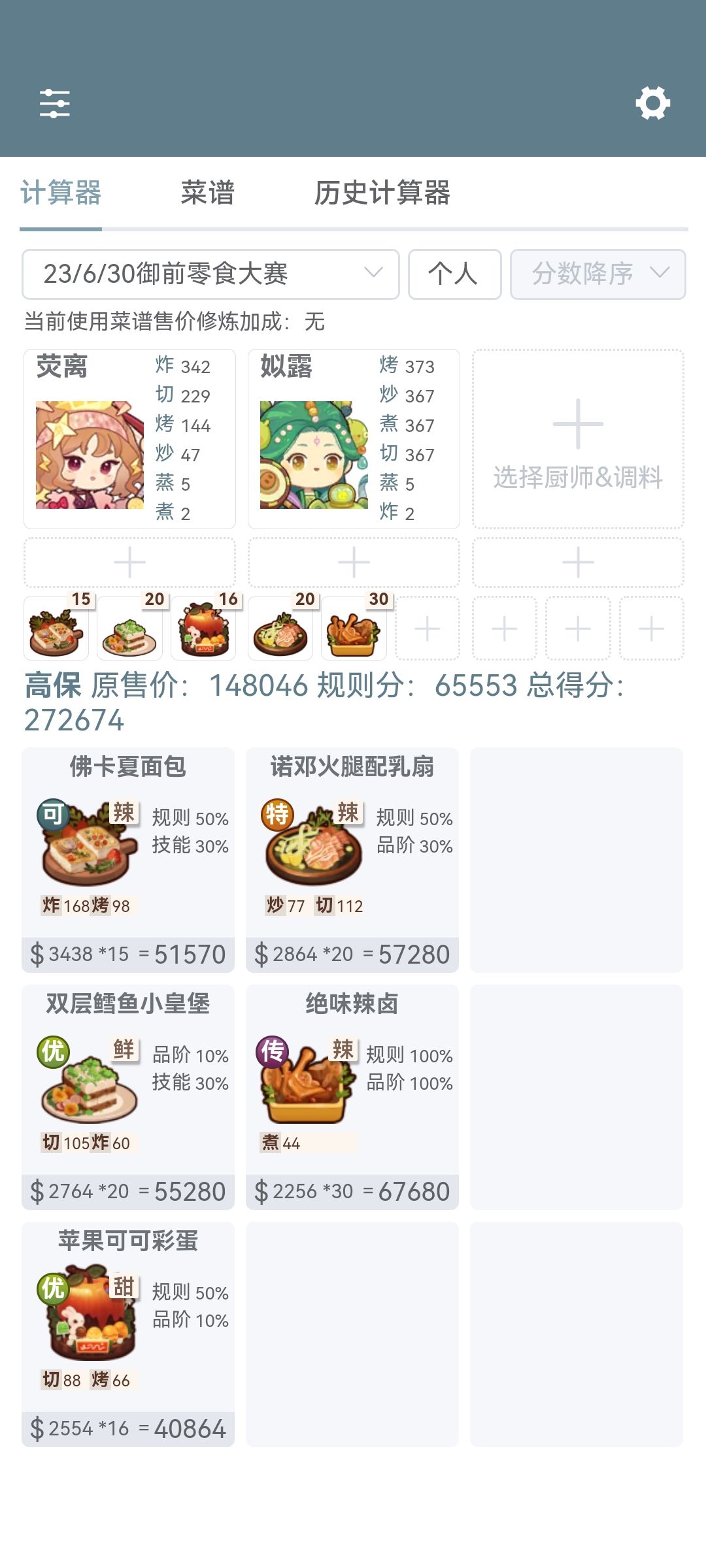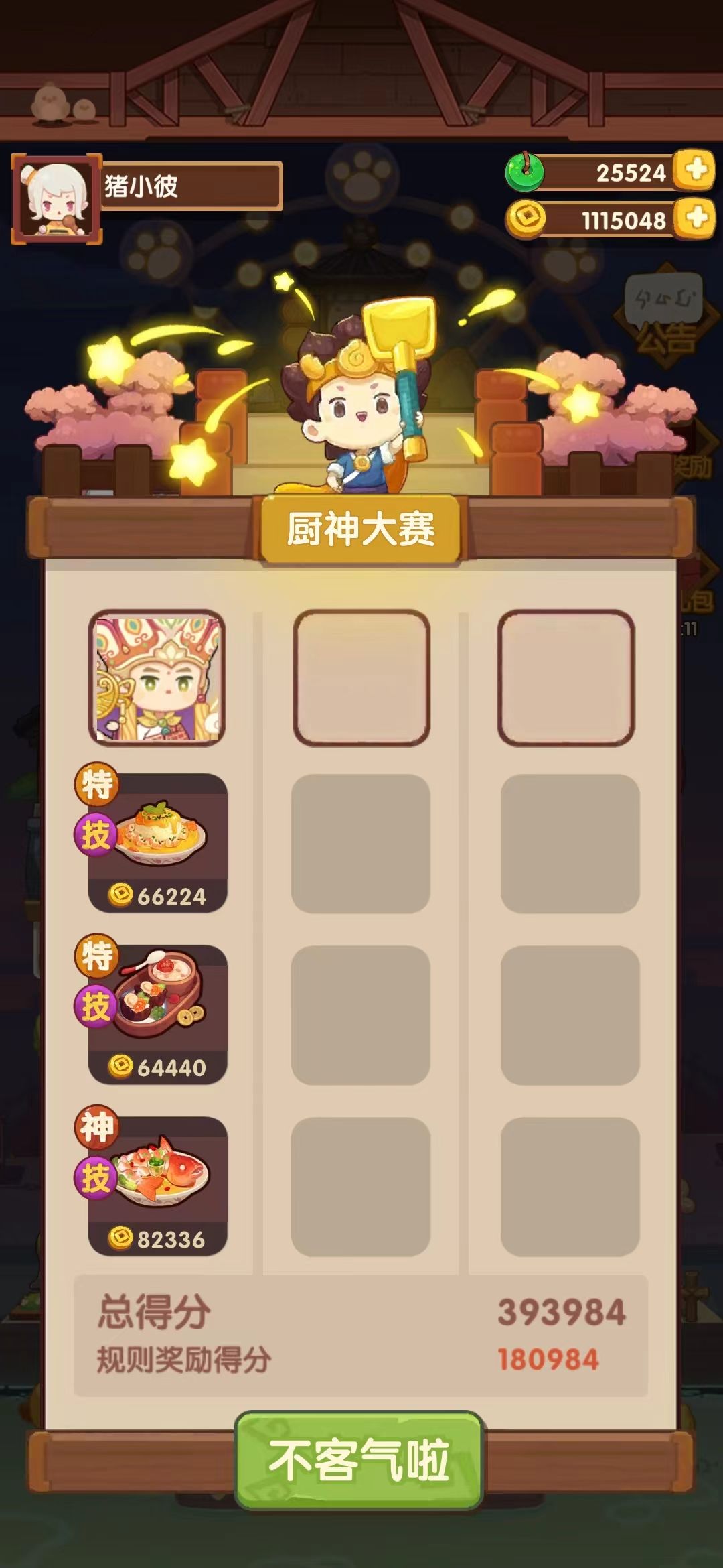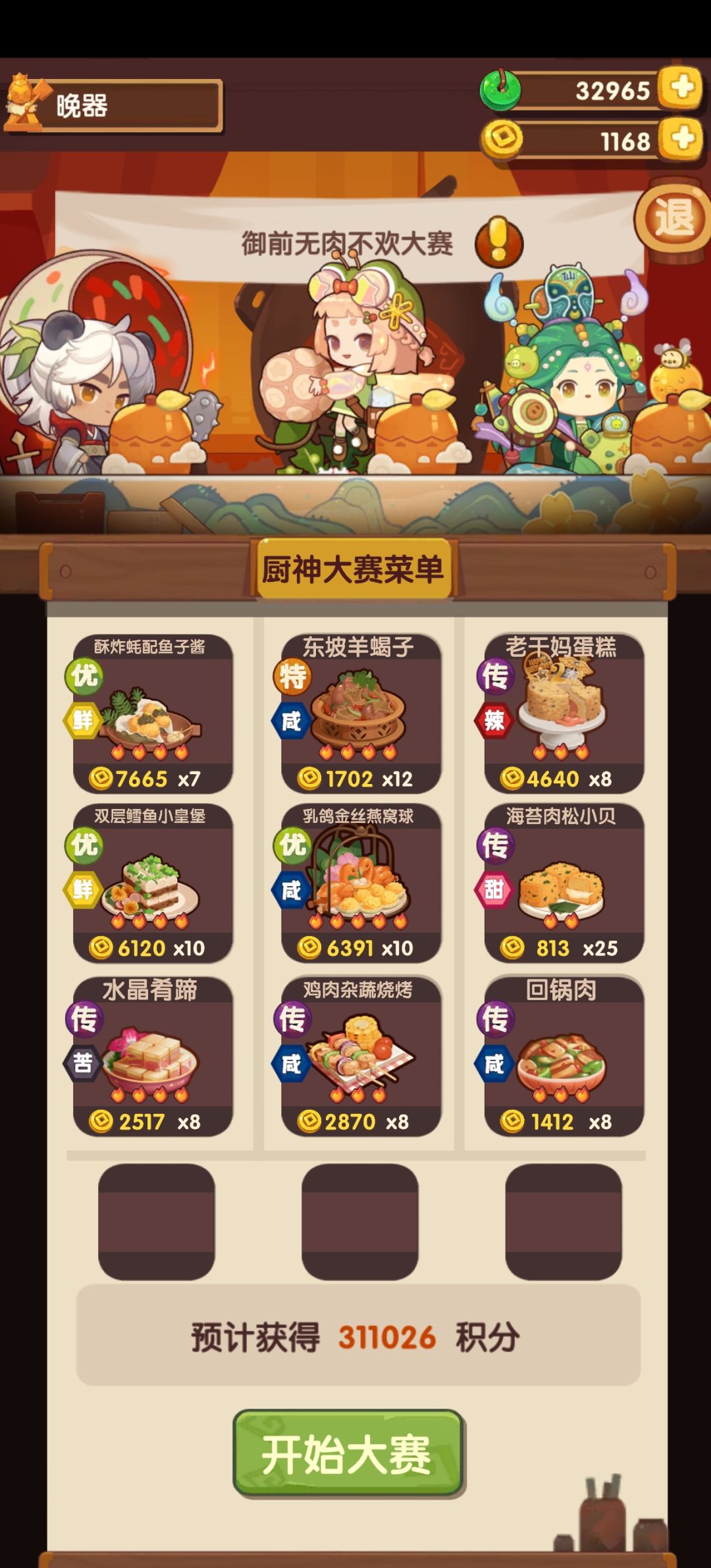 用了三个归途池的一火🔥厨具和大部分人都有的菜谱。差一点的可以提高厨具售价高的装备