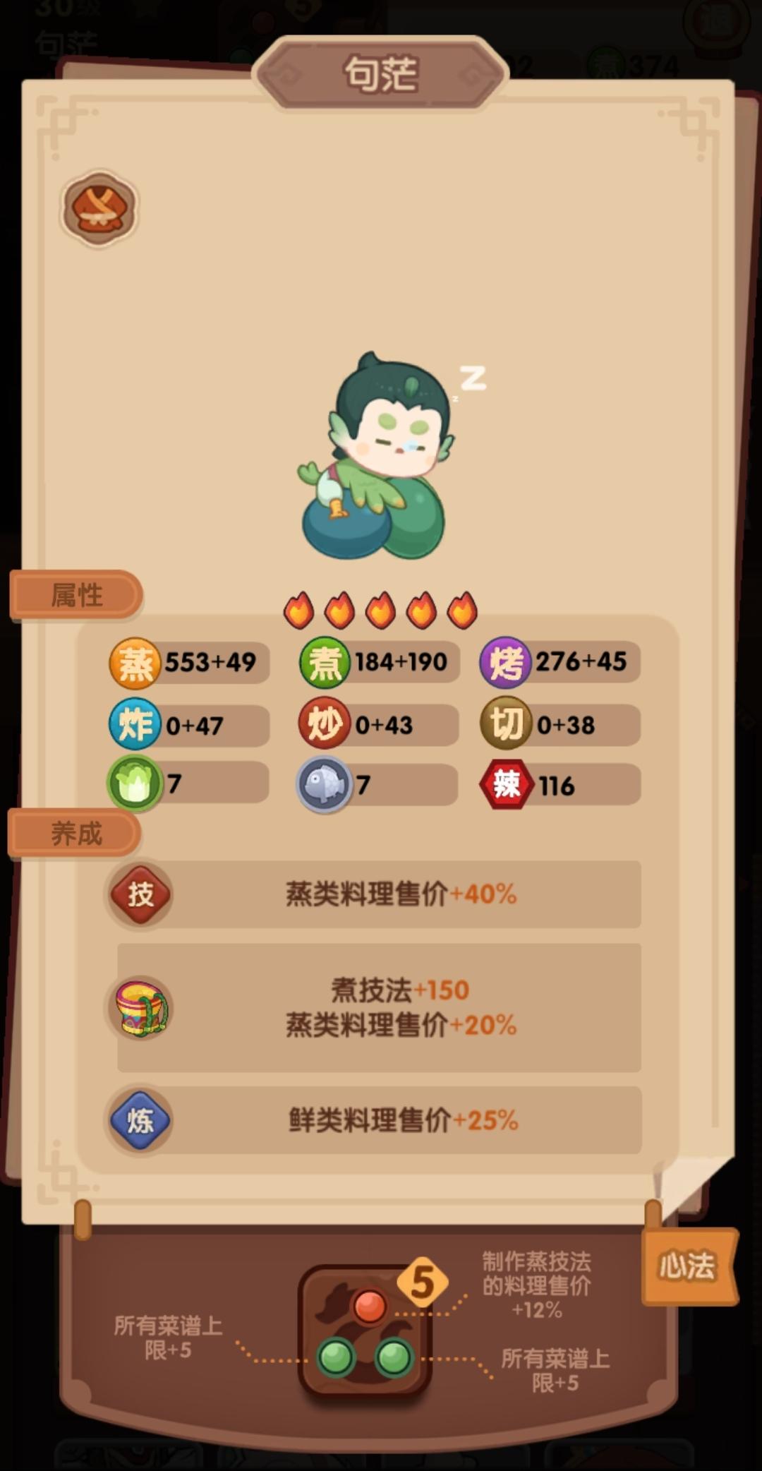 第一次御前高保没别的炒厨子了还好有送的洛竹,用了俩厨具一个加20%炒售价给洛竹一个加15%切和15%菜的给司姬。有更好的菜就不用厨具。