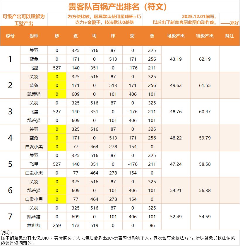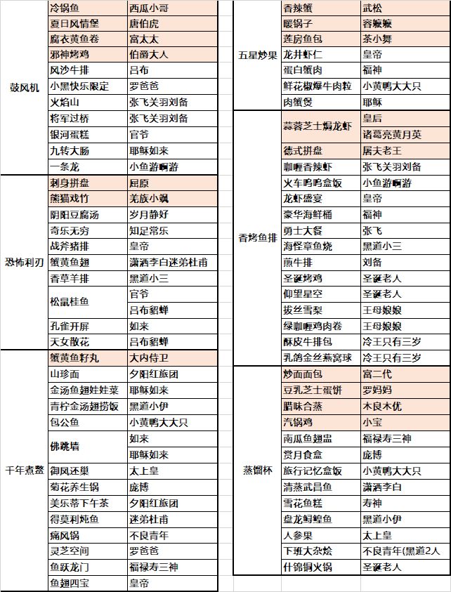 【符文菜谱活动期玉璧赠送表】红榜已变化