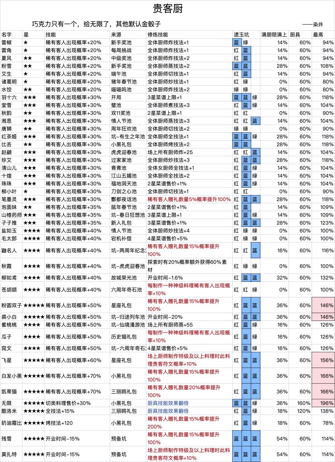 注:本帖是基于我自身游玩情况而进行分析残雪这个厨师适不适合我购买,如有不足请大家指出来,也欢迎大家来看一下我的笑话。 今天因为工作原因,有一户不到最后时刻不配合。然后由此联系到了游戏里面常说的:不到残血不会玩 再由此联系到谐音梗残雪是不是残血的意思? 就类似于数值低也是合理的 没有贵客率也是合理的?因为要后期有资源砸下去才能变强? 如果是这样的话,一切都合理了。 之前论坛有tap说过这个厨师的数值