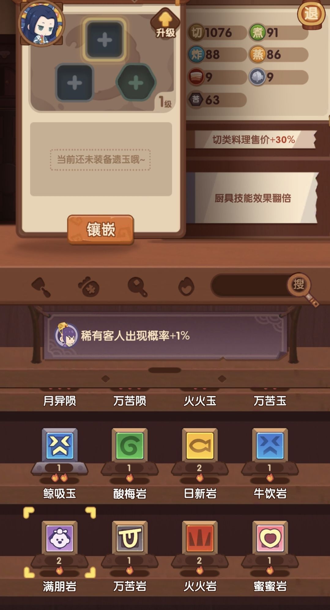 遗玉真的耗符文,硬生生把蒸汽宝石从三位数干掉到两位数。 今早看到一行大佬发帖子,才想起来前几天开石头出了一些采集的石头,然后立马装了上去。实现了永昼宫从48提升到了64 目前情况是还缺金符文,否则桂小乌还能再升级心法盘。 特意刷金符文,感觉又不值。 这游戏好玩就在于慢 但也能知道自己可以按照自己的节奏去提升自己。 现在的节奏就是营业方面 优先周常之后主线任务 后面如果主线不需要营业 可以考虑专精或