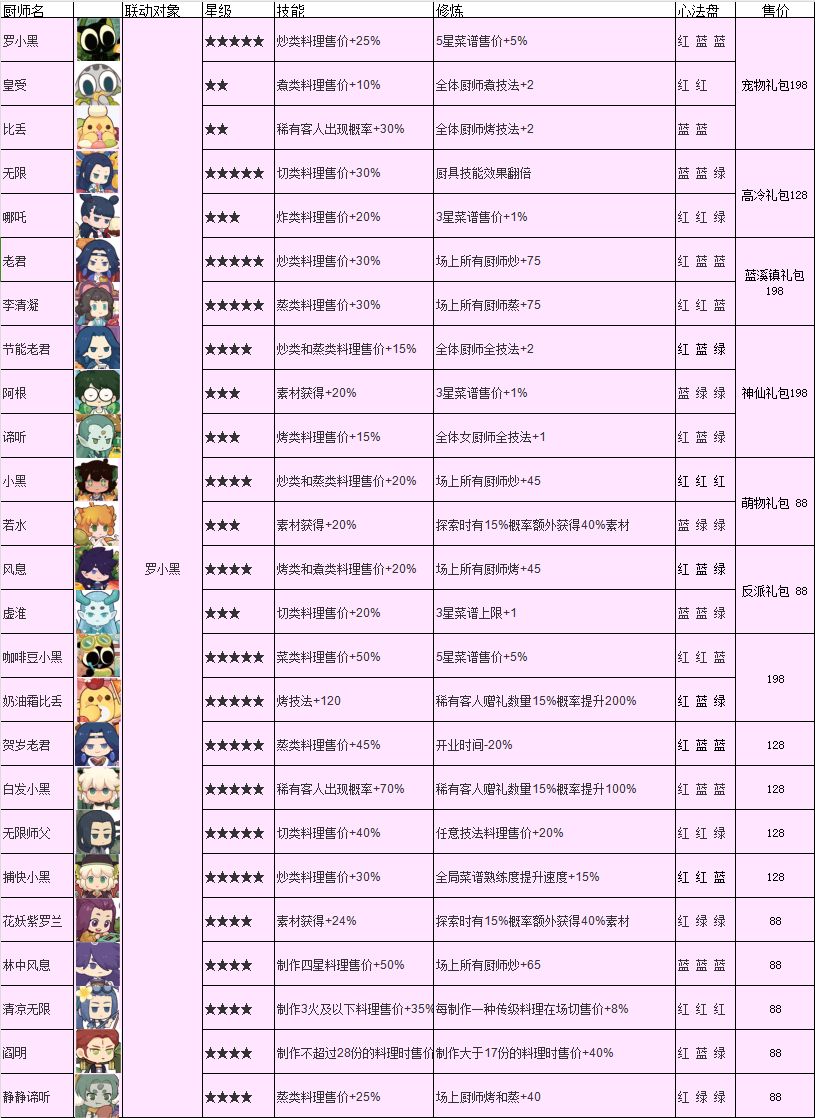[表情_微笑]一些修炼存档,基本就是记录五星or早期的一些并不好修炼的厨师并非最优解,有时候容易头铁 也顺便记录下一些思路,免得每次都要重新计算[表情_捂脸哭] 目前的光环厨 煮 玄离+45 炒 玄一+45 烤 布丁+70,阎小罗+45,發才+35 炸 切 司姬+45 蒸 大麦+35 4.11 蛋白蟹肉 出锅 5.3 大麦 蒸光环+35 5.8 高级池 咖喱香辣虾 5.8 晚秋拾遗池 香辣蟹 5.