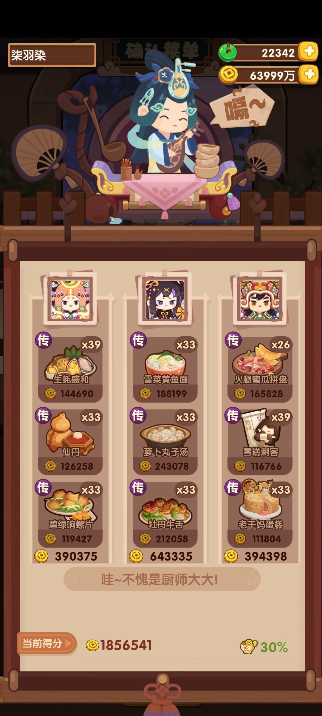 用计算器算了下 小皇帝带炒能高一些分数 雪糕刺客 萝卜丸子汤没有的快去实验室研发吧 早晚会用上 四号位用煮切厨师 有黑风可以用黑风 这里尽量用大众菜谱 所以没上小皇堡 金鱼鸭掌 雪笋干贝 之类的有的话可以自己替换