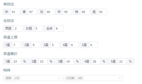 只需要再升一级即可神BBQ烧烤,作为光环基修不足的辅助 经检验,烤技法+5%对厨具也有效,相当于200烤厨具实际为210烤