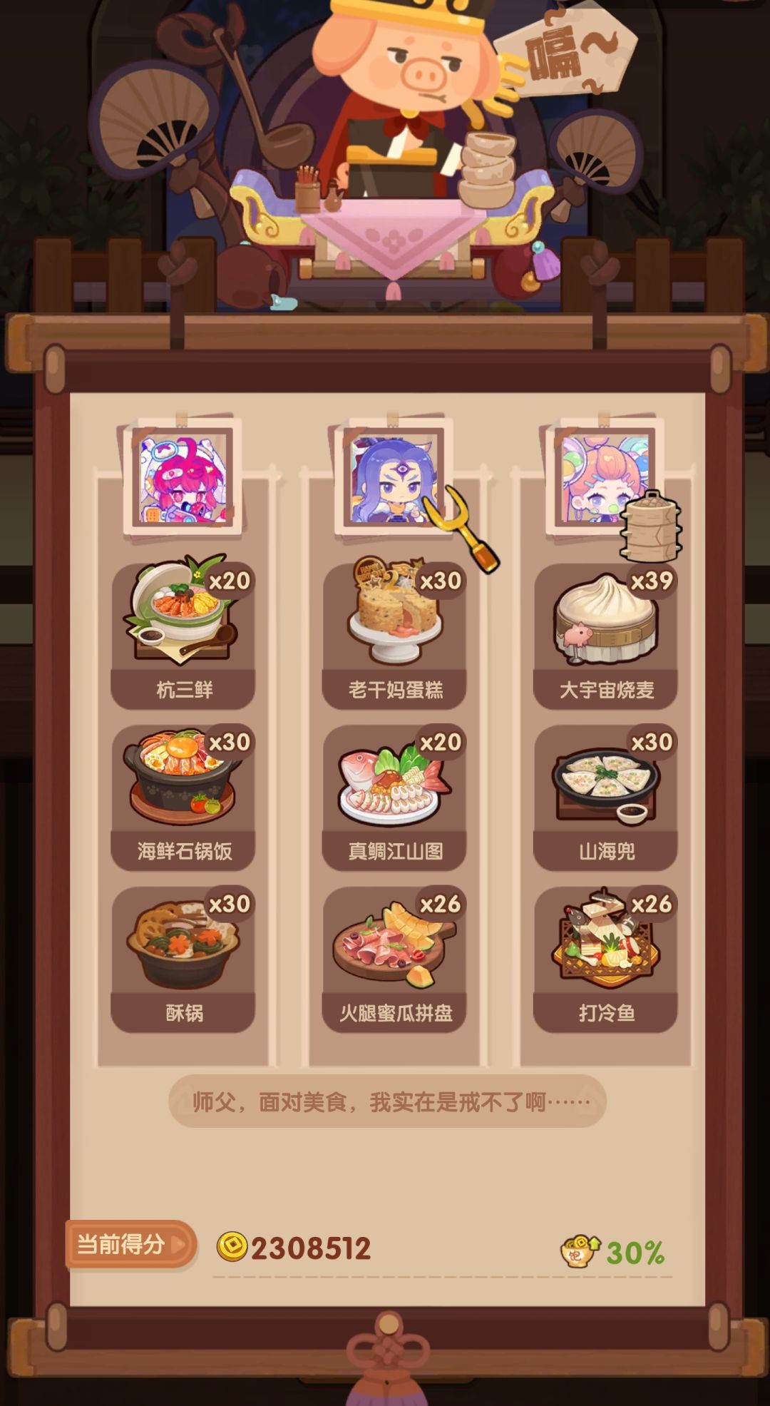 🧱前排提醒 省五档分数线:2052000 这期比较简单,双贵客均单人满档[表情_送花] 📌菜谱优化 森林烩藜麦 下位🔥鲍鱼虾饺 蒸汽海鲜 下位🔥包公鱼 火腿蜜瓜 下位🔥福寿天橙/苹果可可 🍌上期链接 🐲1018[猪+御]省五档喵喵适用 https://www.taptap.cn/moment/596443731905743377?share_id=c4d848319c07&utm_medi