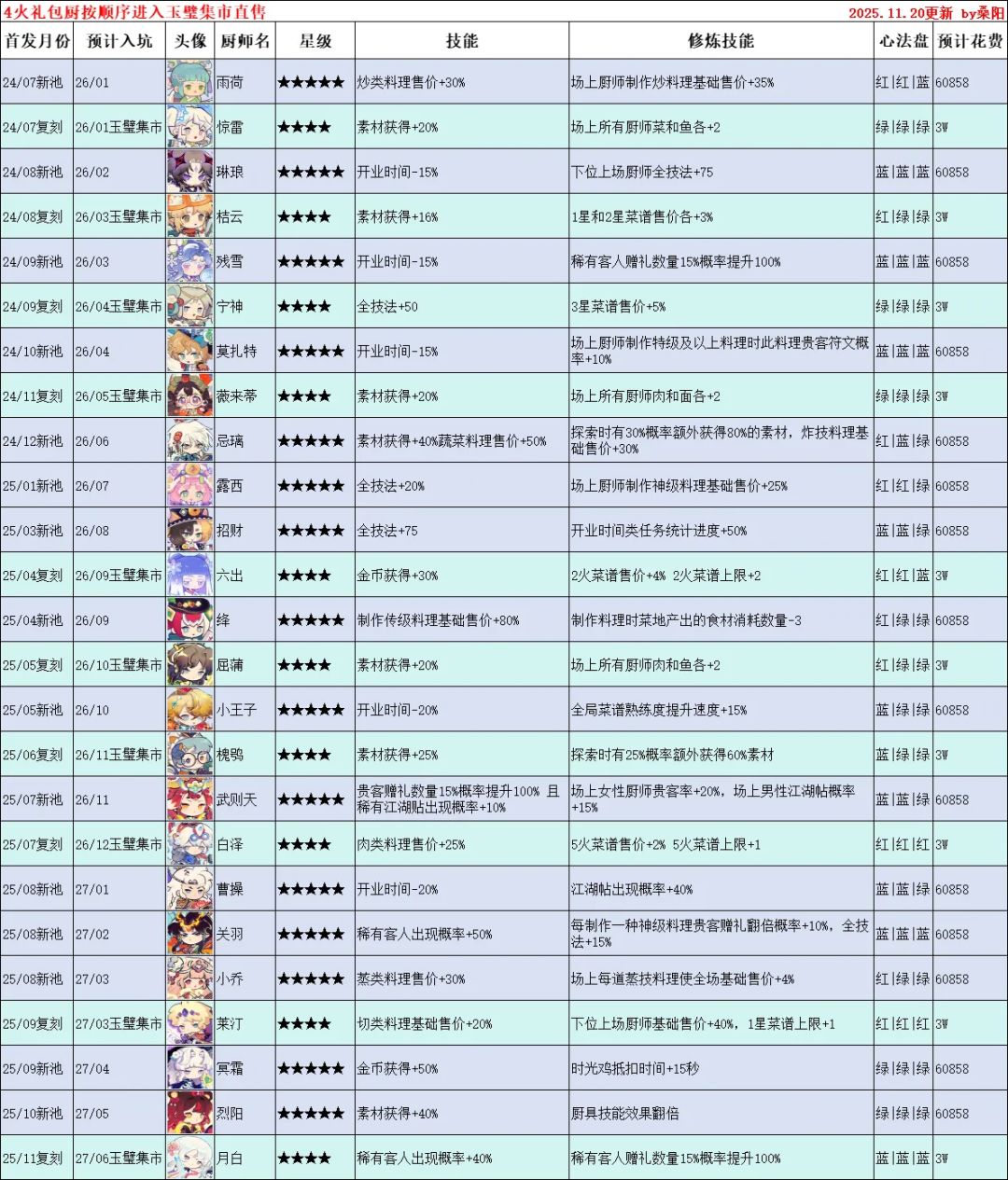 采集规划(采集厨 遗玉搭配) 【更新至06/03/2025新采集厨狲圆圆】
