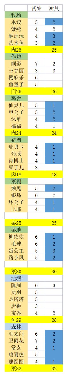 写在前面:琉光入坑,挪了一些采集位给新地图。目前11小时一趟4人凑60。 挪动以后的采集地(低技法采集厨优先稀有材料) 不影响实验室坐牢的厨师 希望新帖子厨快来#攻略#爆炒江湖