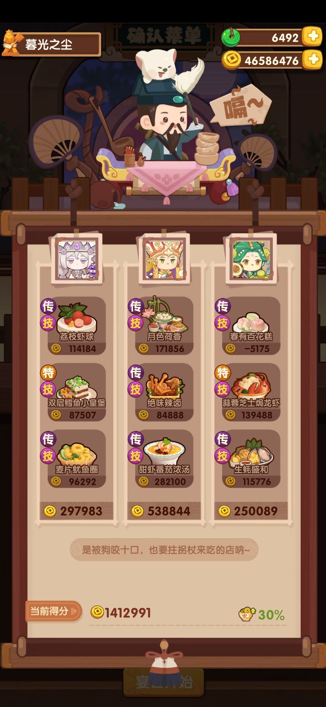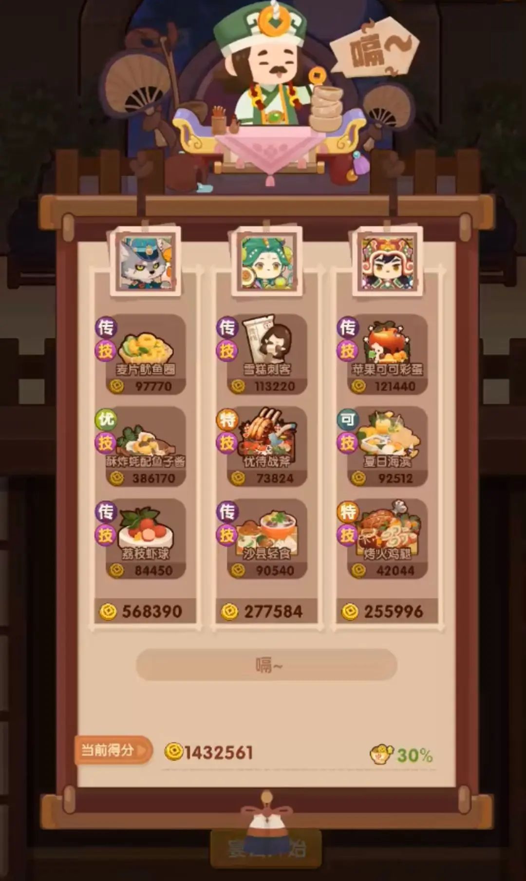抄的分不够,本来想上厨具了,瞎试了几下居然又够了