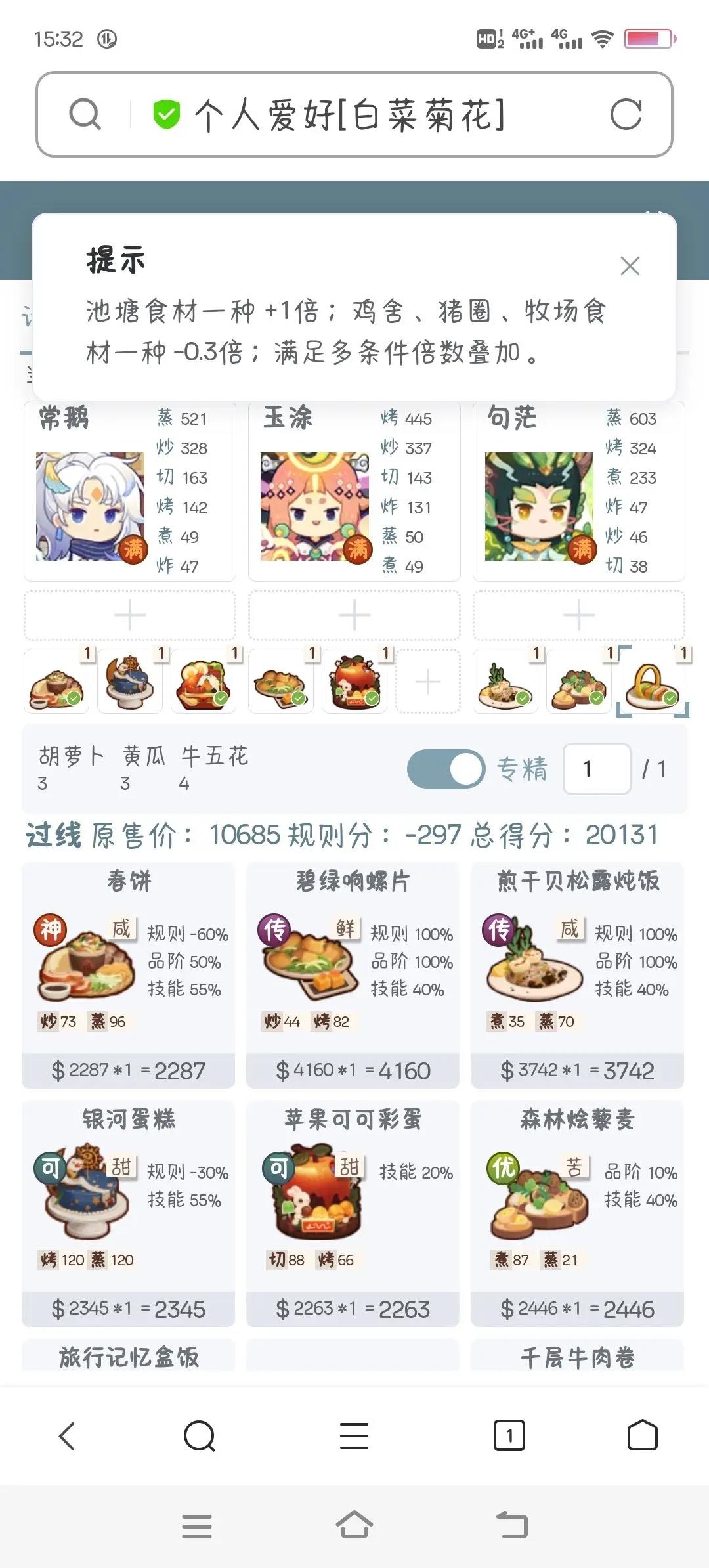 厨神菜谱大盘点?——浅析菜谱厨神潜力与食材数量限制机制