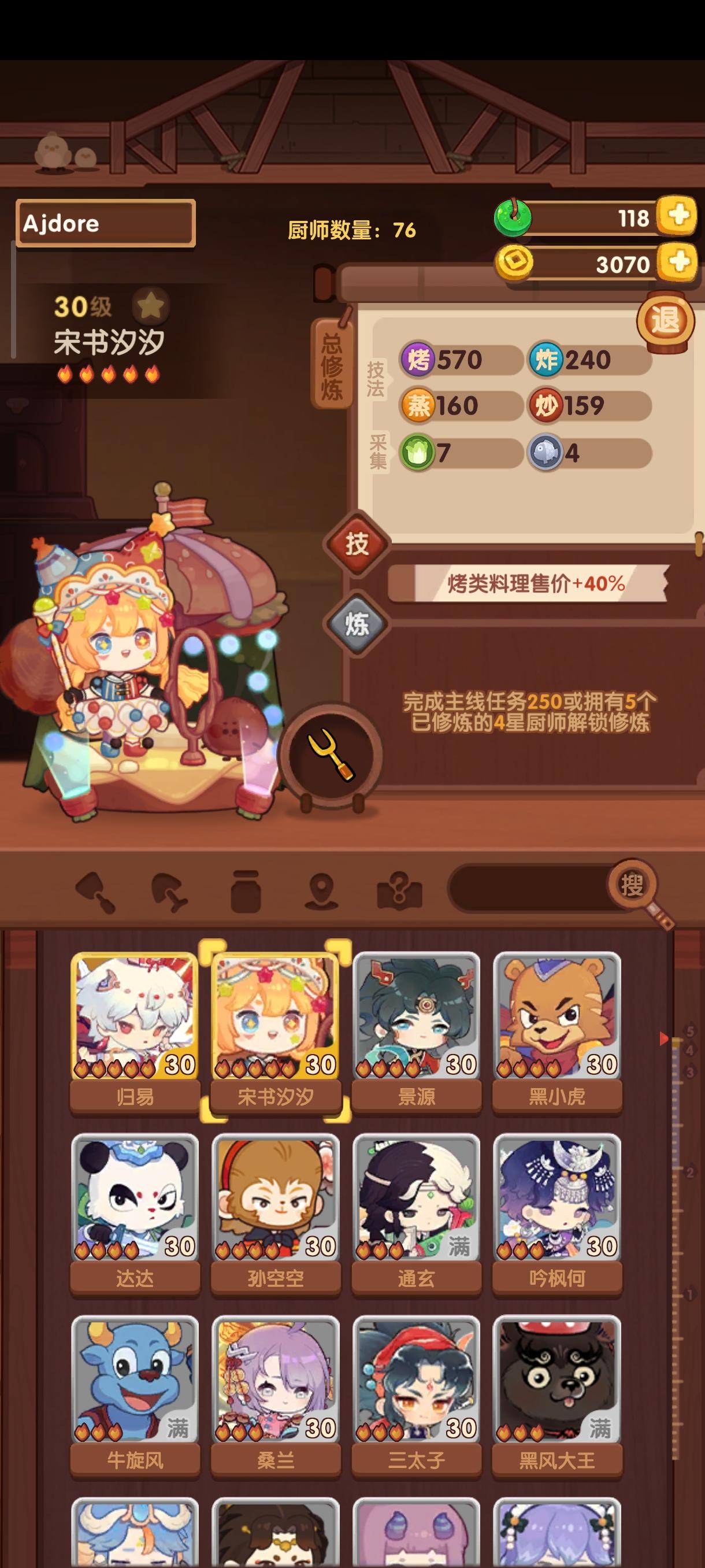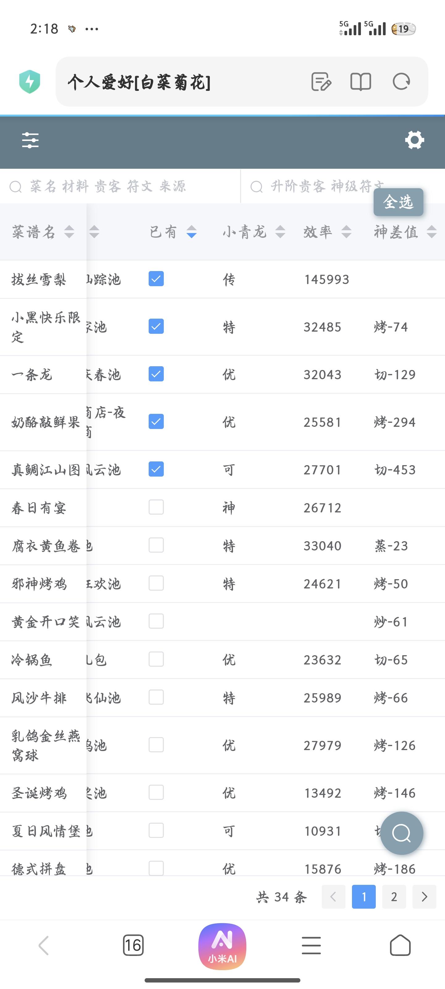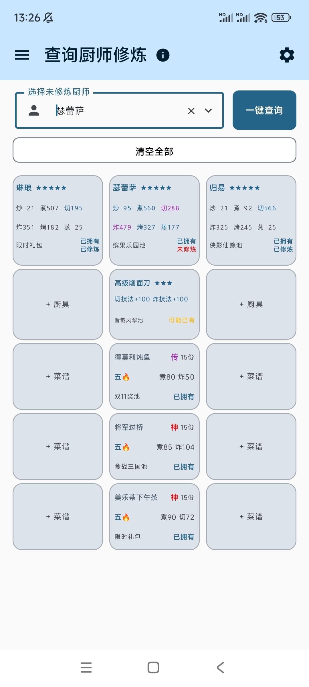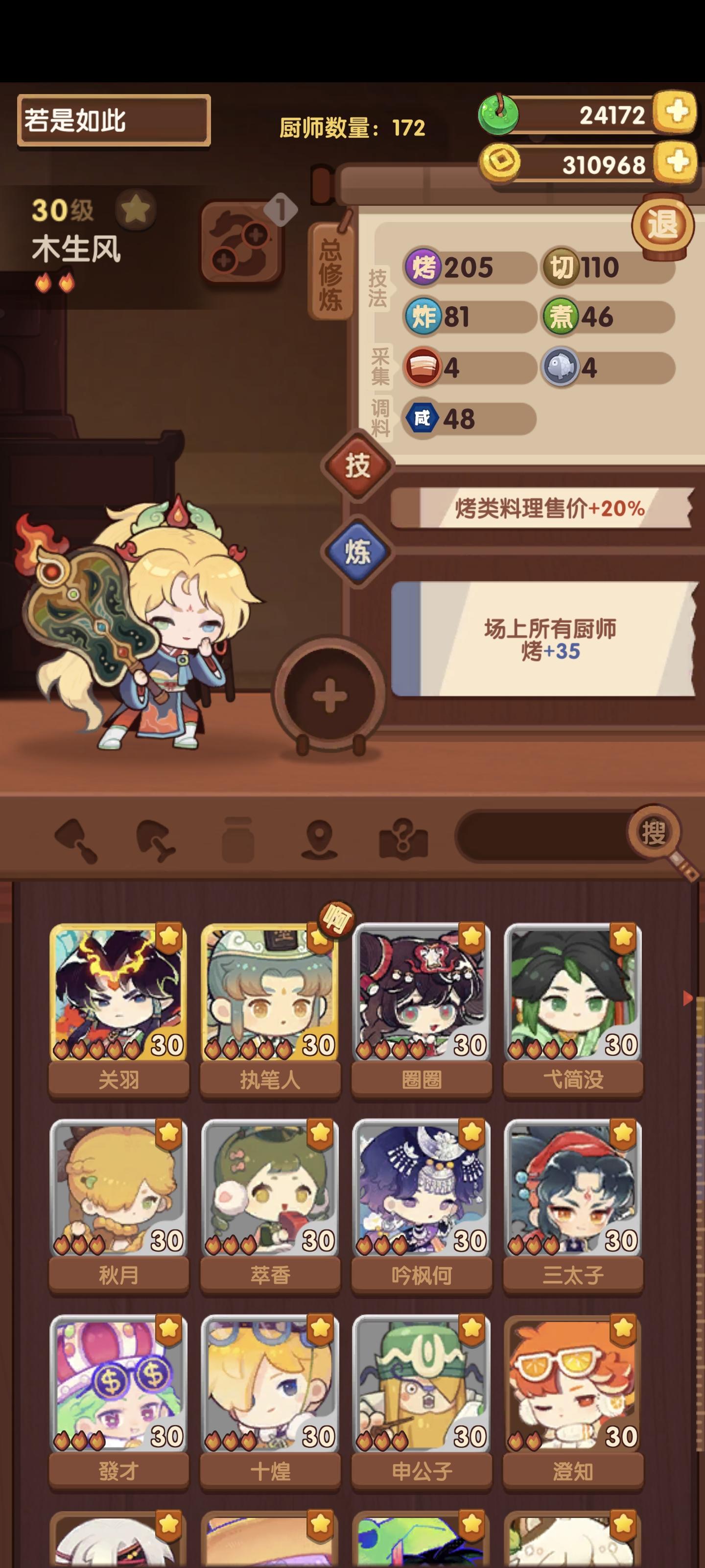⭐️发现现在大量修炼非常缺符文所以研究了一下修炼过程,根据已有的五火菜尝试修炼白发小黑(关羽已达标,正在修)①修炼执笔人(如图一)获得光环切50+蒸50②带执笔人外加烤切+80的厨具(雨花剑)修炼小青龙(图二是无厨具光环欠缺的)③修炼小青龙光环烤50+炸50(图三),比对了一下白发小黑(图四)所欠缺的数值算了一下,场上带上小青龙的光环,一条龙够了,香草草排差106烤,其乐无穷差154烤,