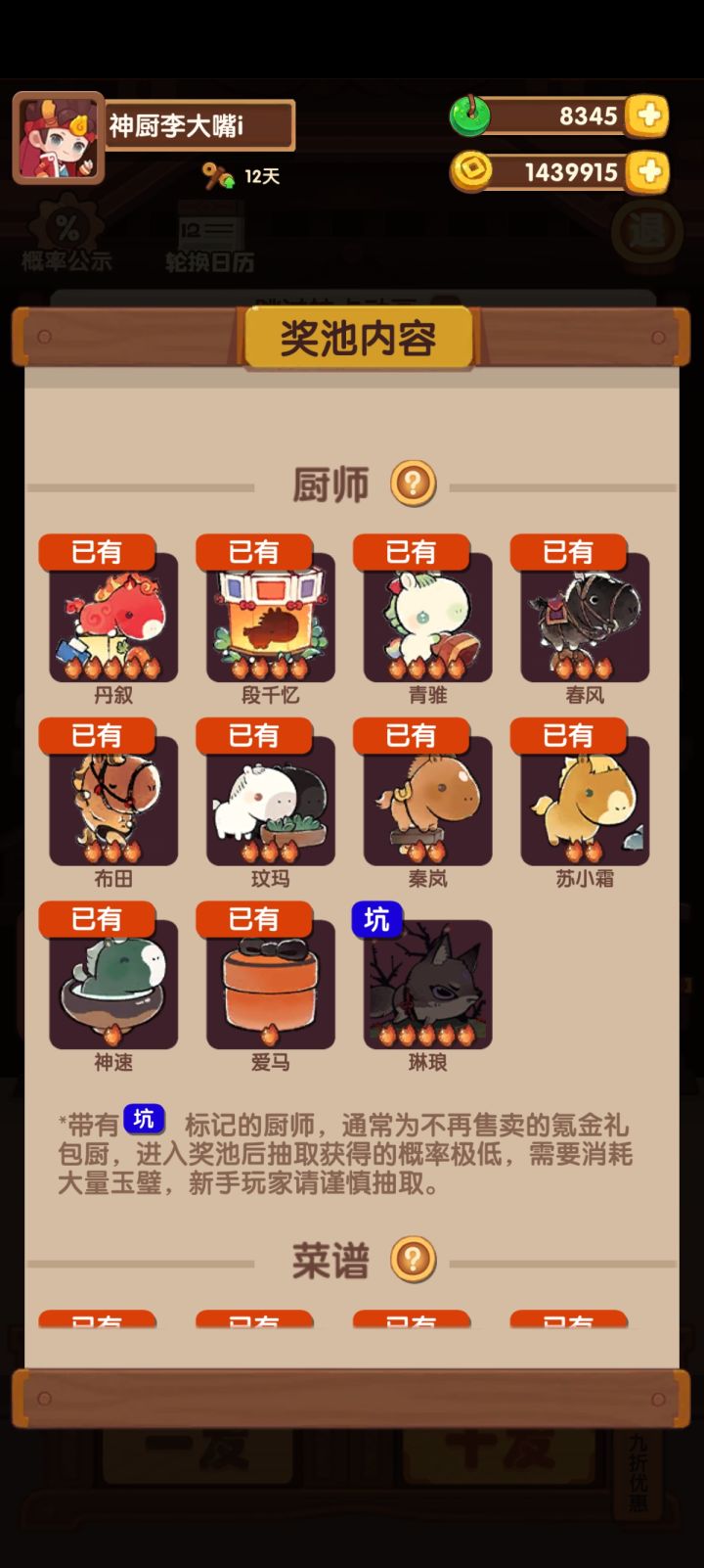 说是五分钟刷新这也没刷新啊,目前感觉上今年过年的奖励要比之前年兽奖励少挺多的目前看下来骰子恢复时间基础是40分钟,最高存储30个,也就是最多20小时你就得上一次线,不然就浪费了。转盘里走到增加厨子的格子可以多一个厨子,厨子+5%时间,至少20个厨子才能20分钟恢复一个骰子。这时候就得玩家10小时上一次线了。怎么说呢,这活动一点都不像过年的活动。20260212,越想越气,什么破活动,纯看脸