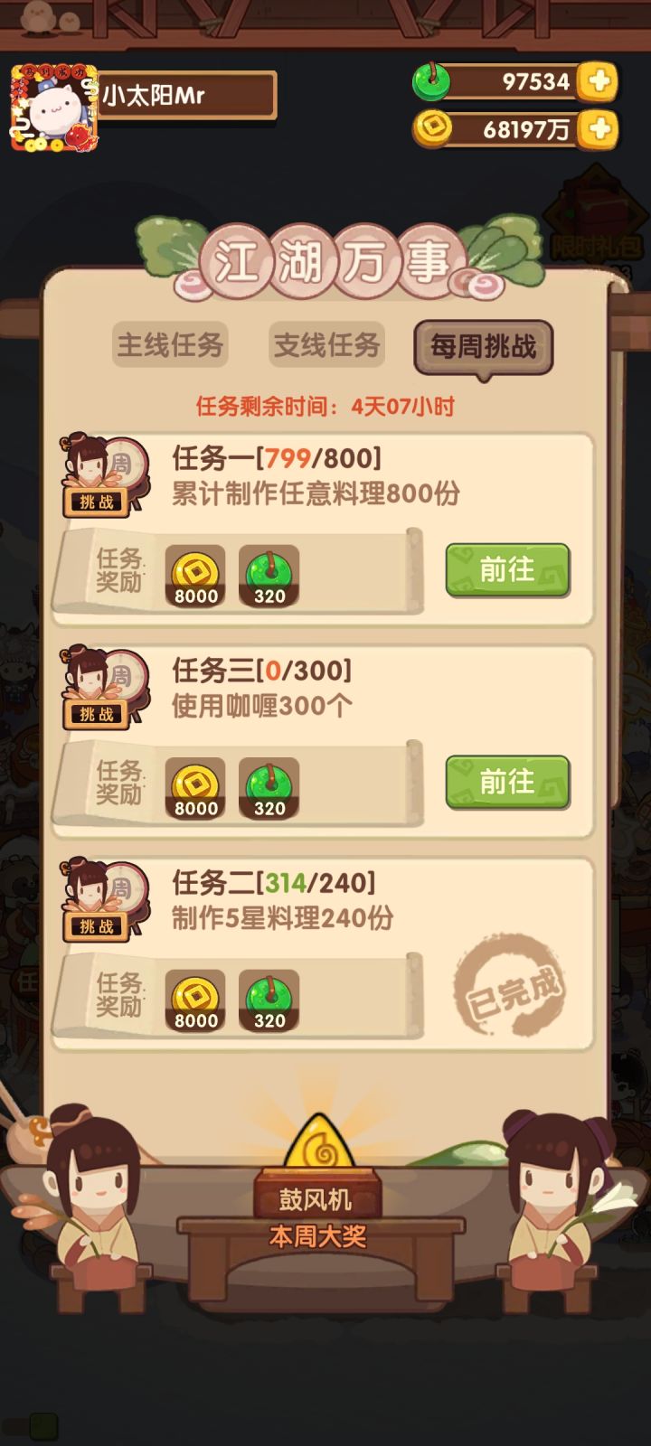 周常的任意料理不是2400份吗?