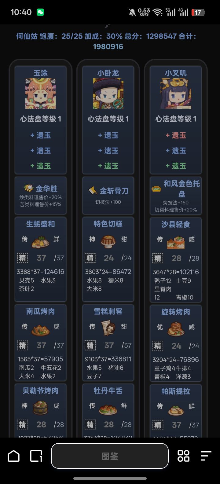 多数是远古厨+菜谱,无奶无鱼蟹无咖喱少虾太久没玩,收集度掉到40了
