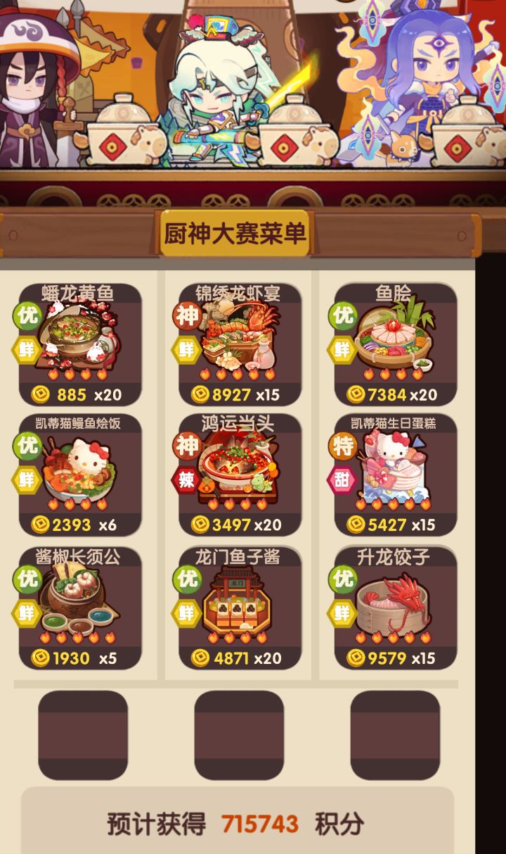图鉴也有宴会跑分啦,目前功能测试中,算分不稳定,后续会逐步改进跑分注意事项:①跑分只是轮椅功能,目前不保证跑出最高分,分数只作为参考,分数不达标可手动调整厨具菜谱②手机跑分后可能会出现无法更换厨具、厨师、菜谱的情况,出现此情况可在菜单点击保存,保存该方案,然后刷新页面后读取方案进行调整,后续会修复该问题③目前小鸟胃贵客跑分较慢,耐心等待即可,后续会优化低饱食度跑分策略④手机性能低会影响跑