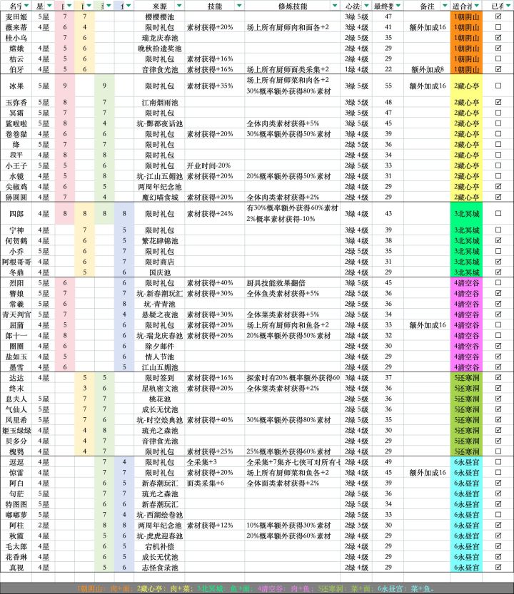 参考论坛一位大佬的攻略,结合目前的最新数据,总结出来的遗玉采集厨加上全采集+3的金鞋子之后,每个厨师可以再+6点,这样一个池子满5个厨子,最低有175点前提是心法盘绿色装满级,5火厨比较难,慢慢修炼吧。#爆炒江湖