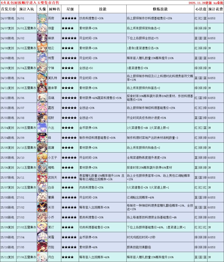 目前假如追求长期高效的刷玉速度,最大的限制不是贵客厨,而是采集不足,假如想要松鼠桂鱼一直永动,那需要1000以上的采集加成,哪怕氪金都很难达到要求的一半,所以理论上刷玉上限是松鼠桂鱼和什锦铜循环(零氪没有美乐蒂假如烈阳入坑,理论上零氪鱼塘的最高倍率烈阳(百眼)(40+24+32=96)+风里希(56+24+8=88)+四郎(45%+18%+8%=71%)(回归券)+忌璃(48+24+8=