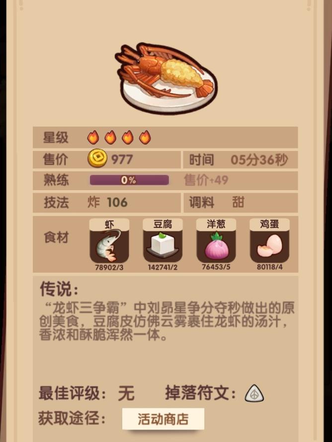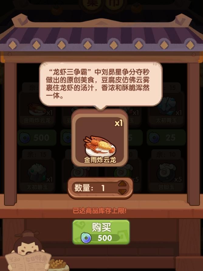 这个月的琉璃商店更新啦!金雨炸云龙是个很好的修炼菜,麻麻再也不用担心我修炼不了四火炸厨啦~