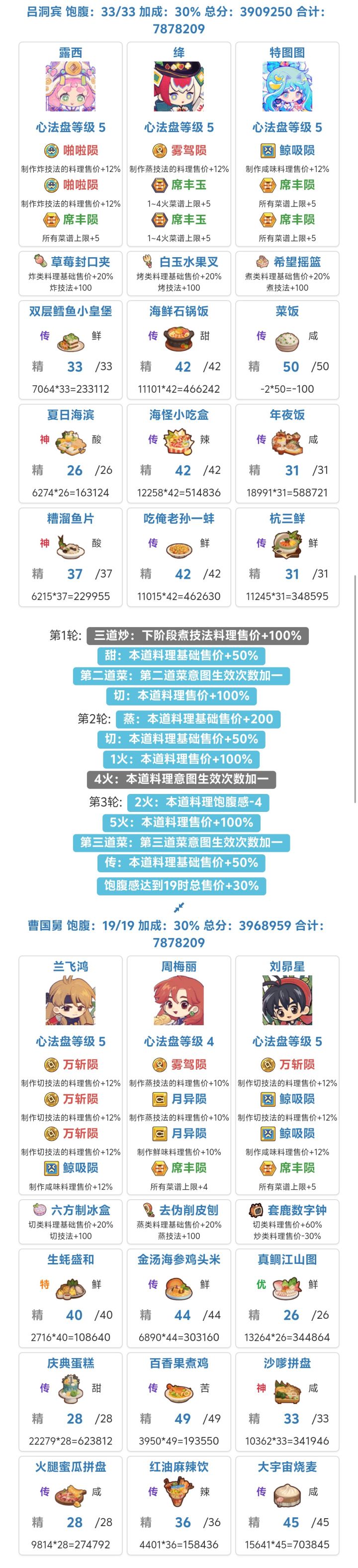 还得熬一两个池子?要么放弃高采集,要么放弃可能能厨神、宴会拿满奖励的机会,今晚想还是先把高采集放弃吧,反正有队伍编队保存。实验室部分菜谱在厨神或者宴会上有一定帮助(比如萝卜丸子汤、河南烩面),还是没有精力管研发。实验室除了部分一火,优先三火研发,毕竟三火菜谱研发所需铜符文较少。
